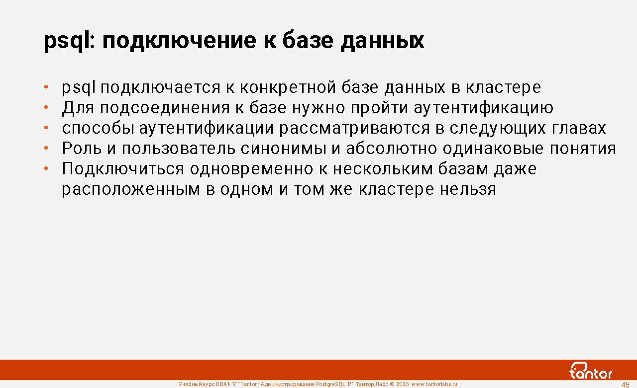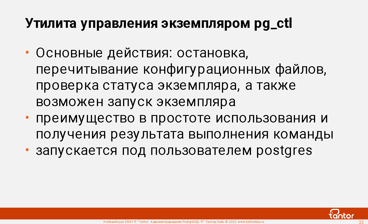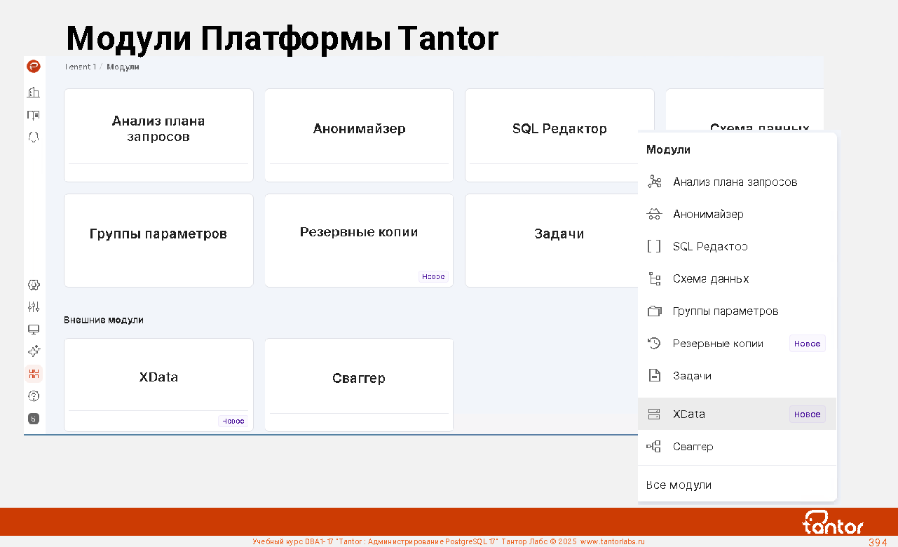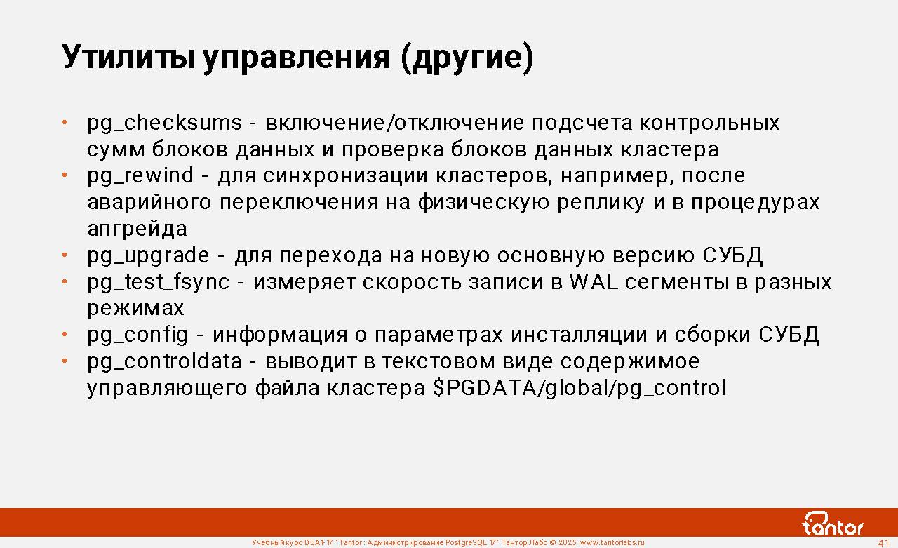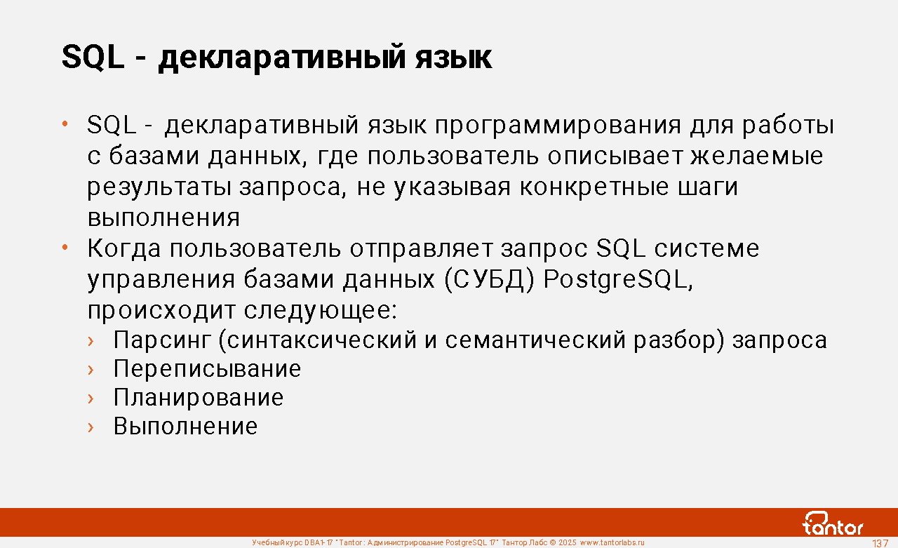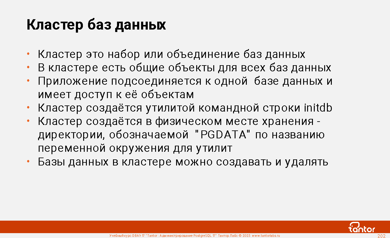 В курсе будут рассмотрены основные задачи администрирования баз данных семейства PostgreSQL на примере СУБД Tantor Postgres и особенности эксплуатации СУБД Tantor Postgres.