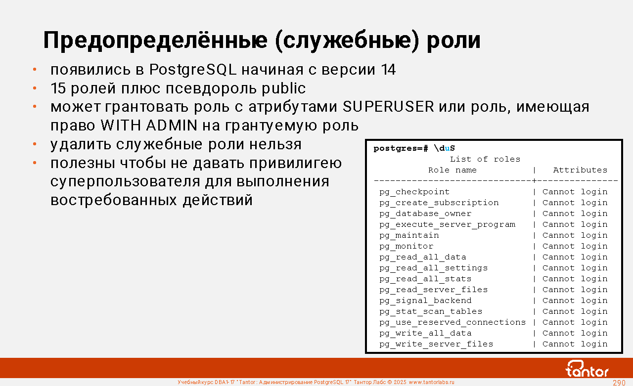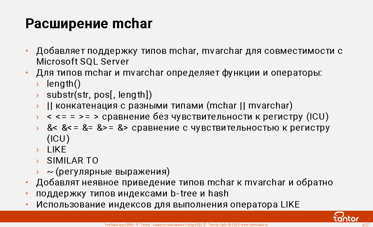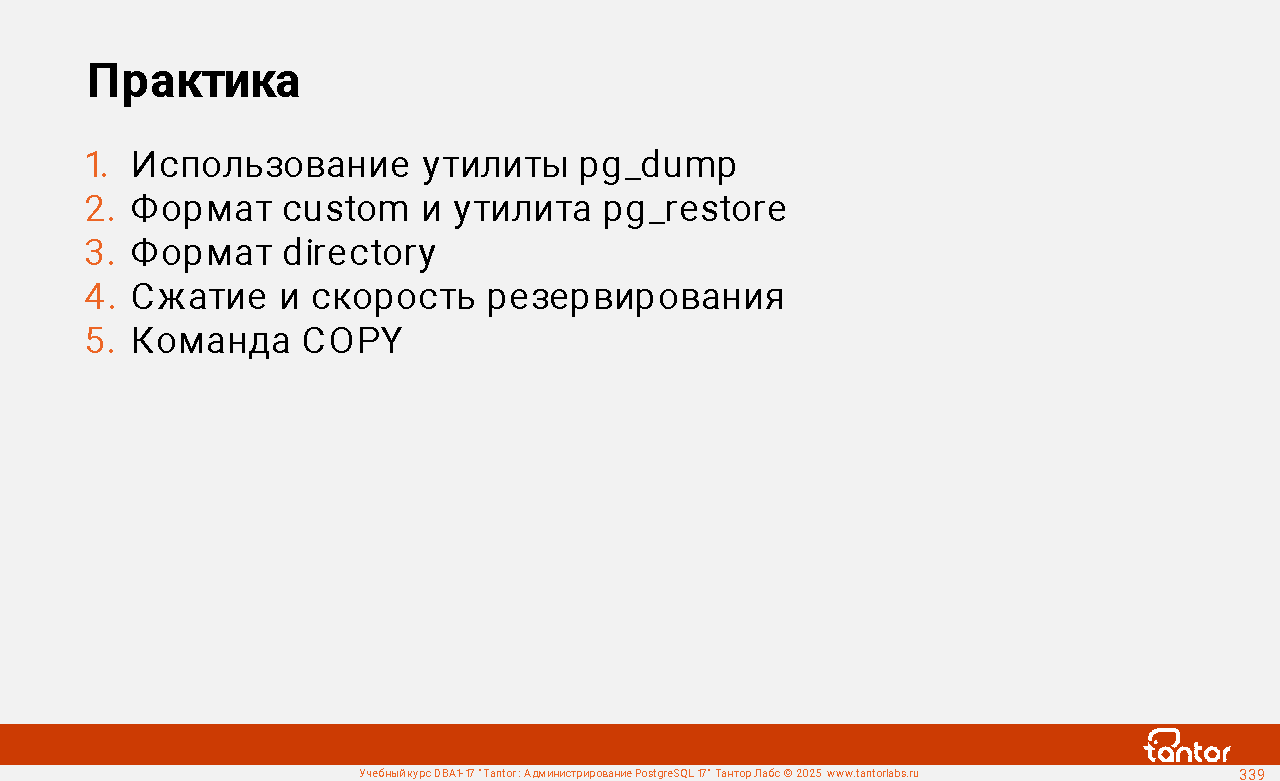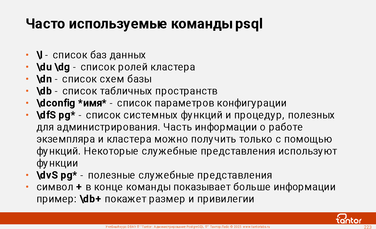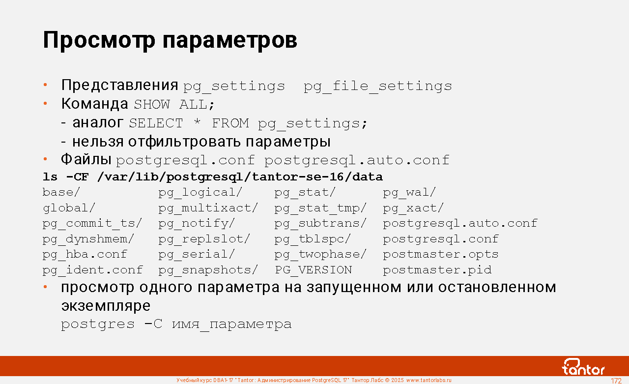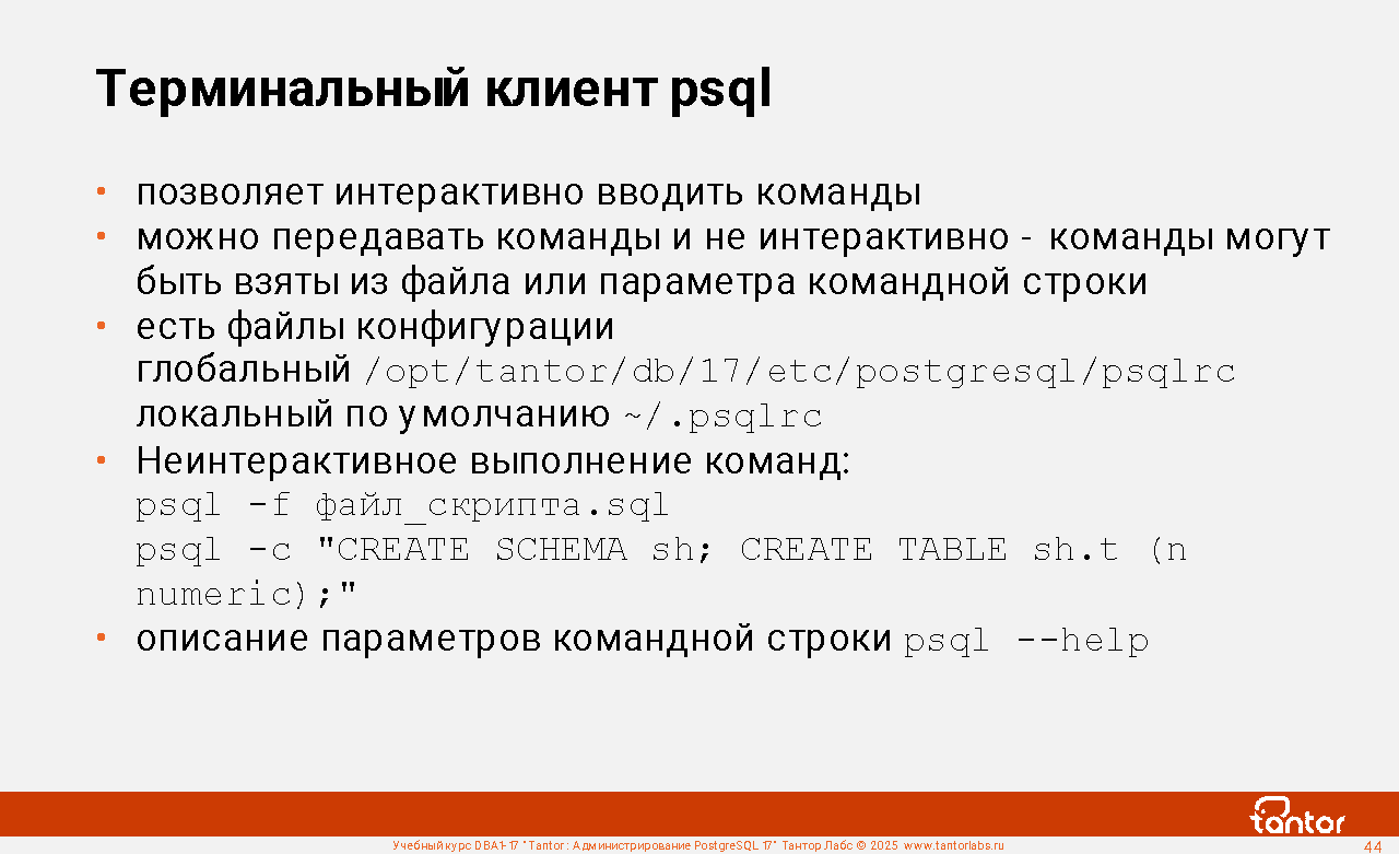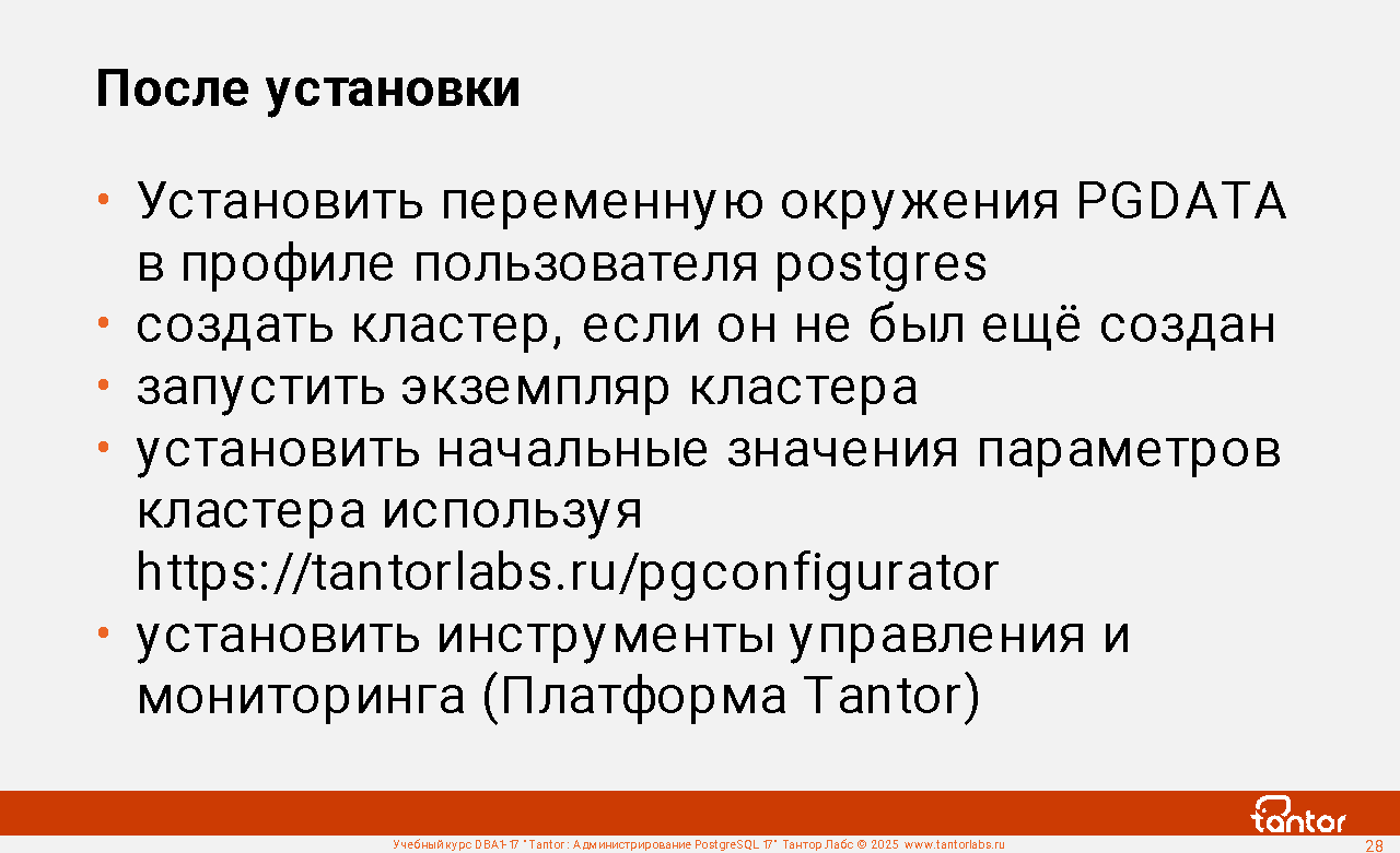В курсе будут рассмотрены основные задачи администрирования баз данных семейства PostgreSQL на примере СУБД Tantor Postgres и особенности эксплуатации СУБД Tantor Postgres.
