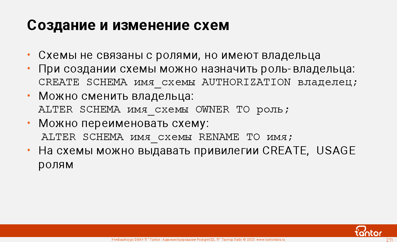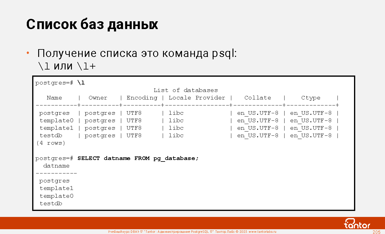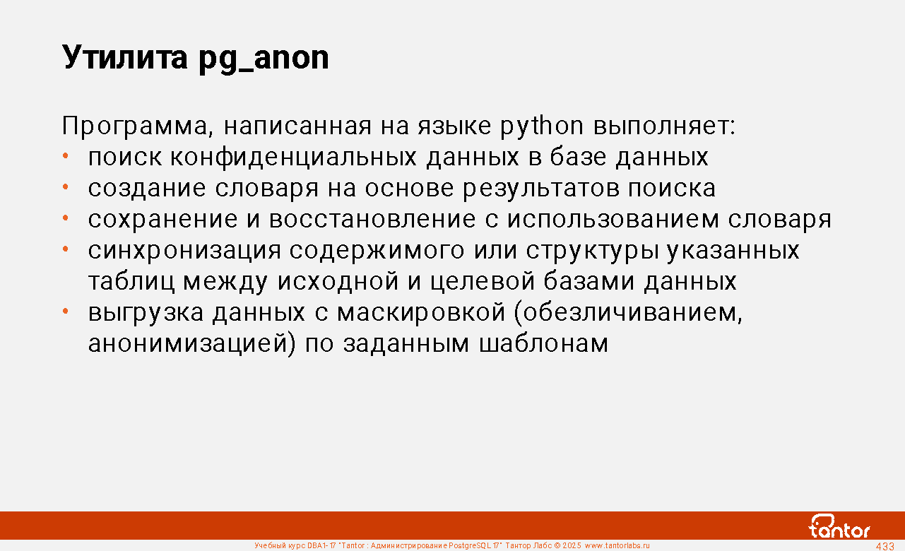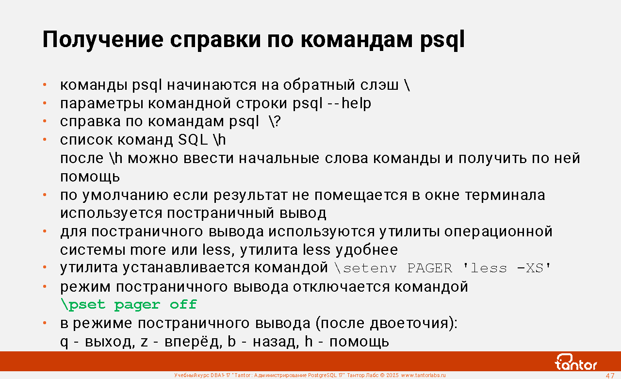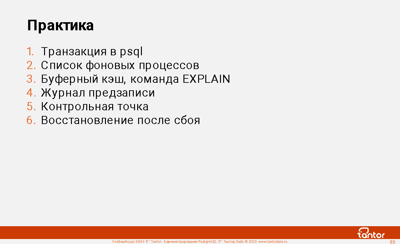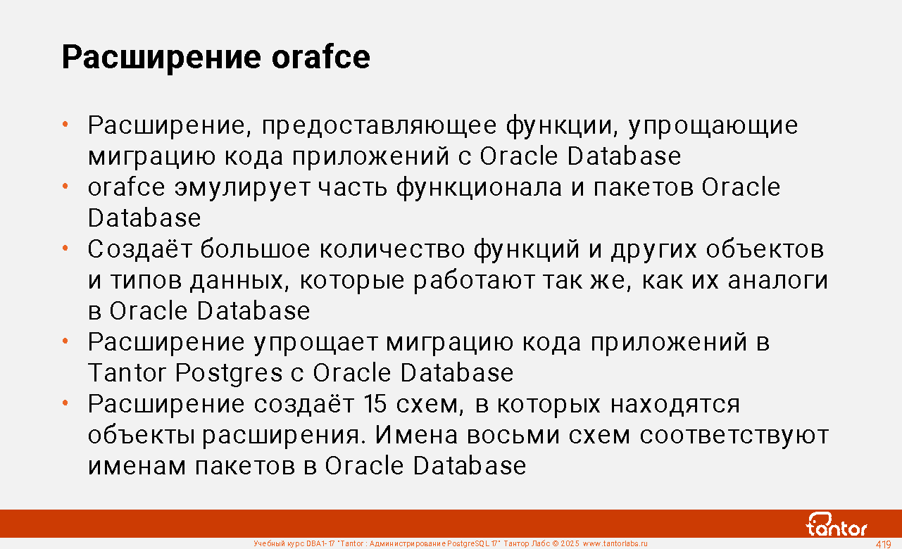 В курсе будут рассмотрены основные задачи администрирования баз данных семейства PostgreSQL на примере СУБД Tantor Postgres и особенности эксплуатации СУБД Tantor Postgres.