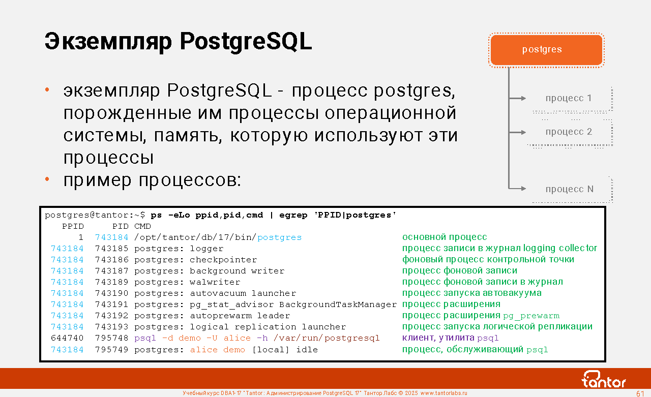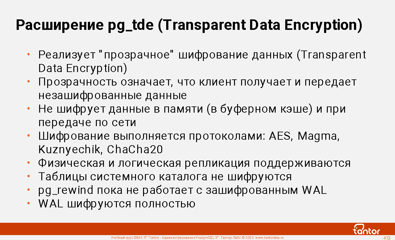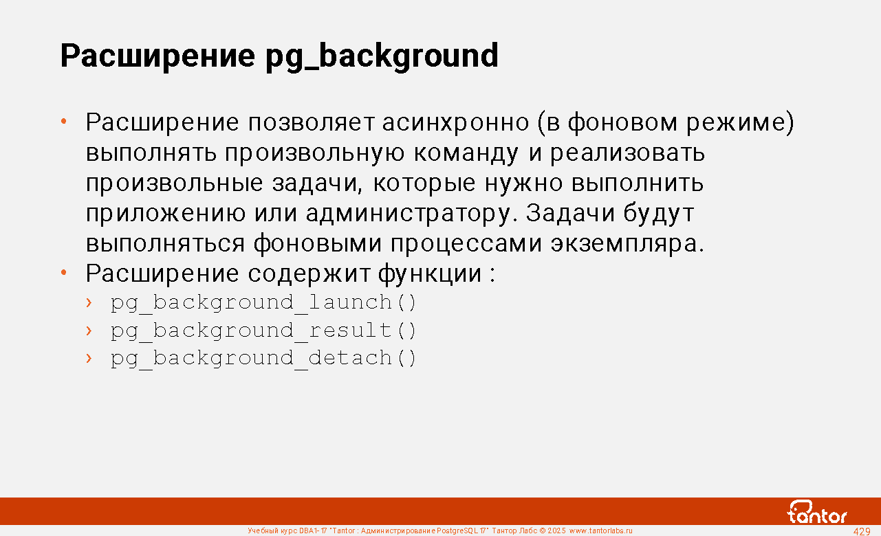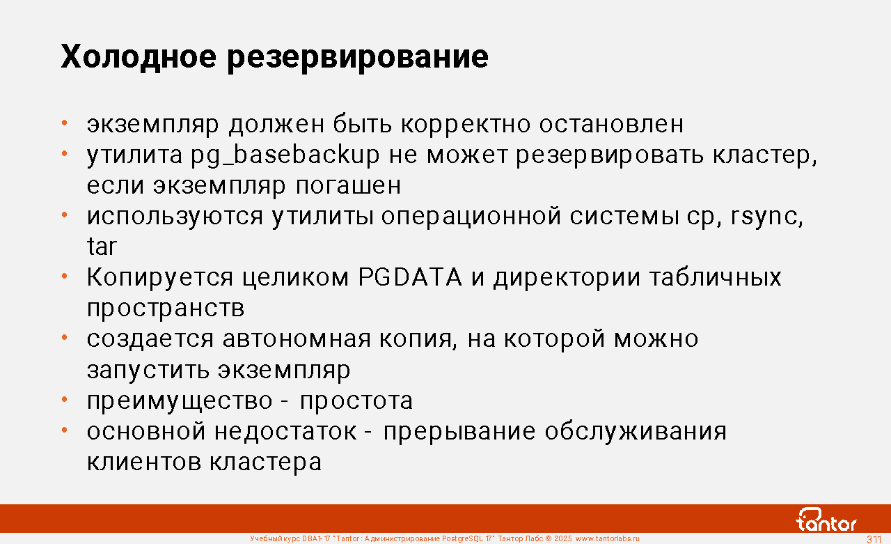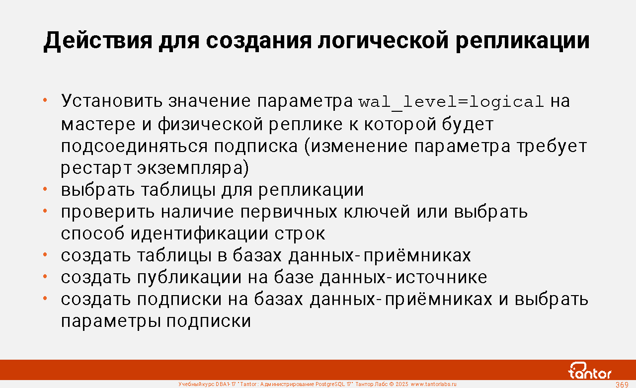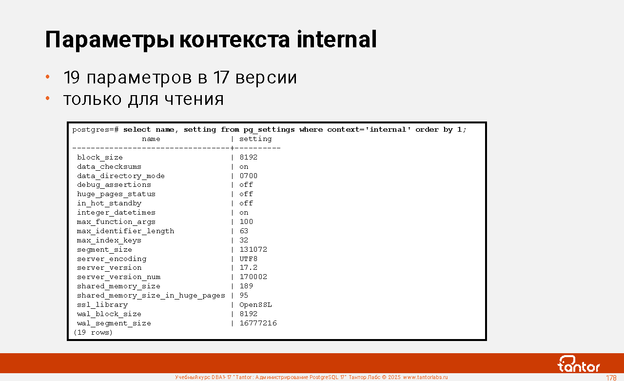 В курсе будут рассмотрены основные задачи администрирования баз данных семейства PostgreSQL на примере СУБД Tantor Postgres и особенности эксплуатации СУБД Tantor Postgres.