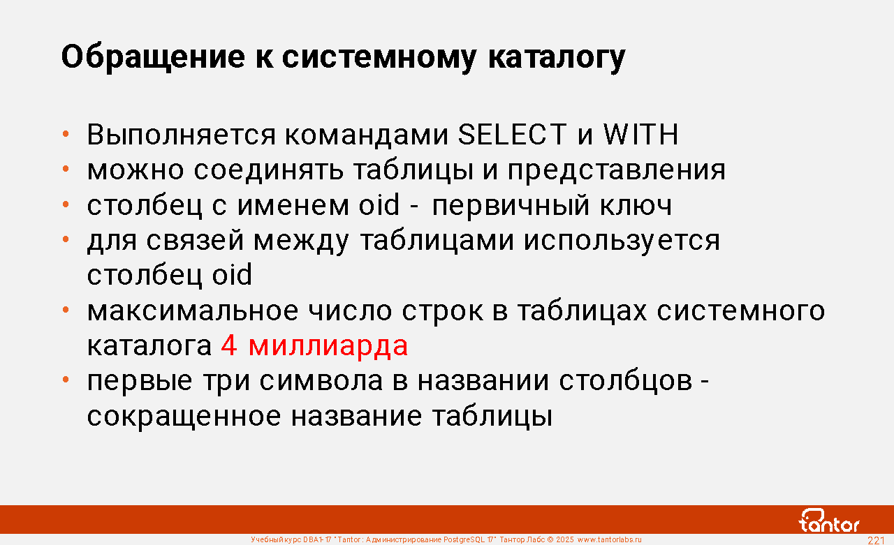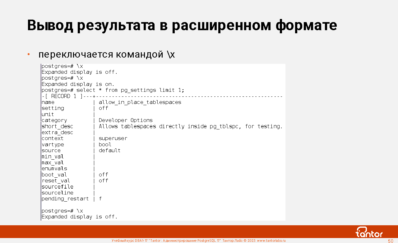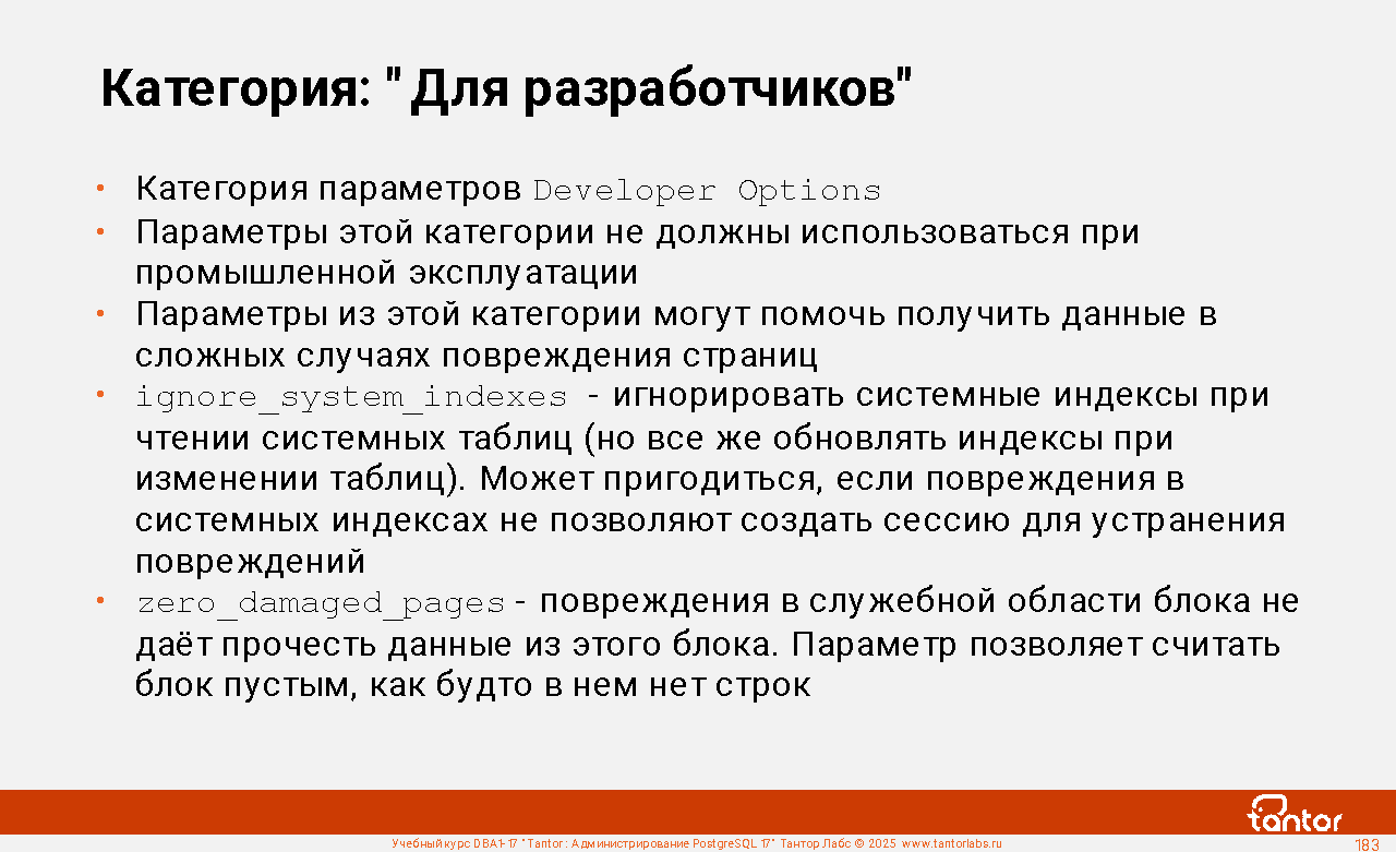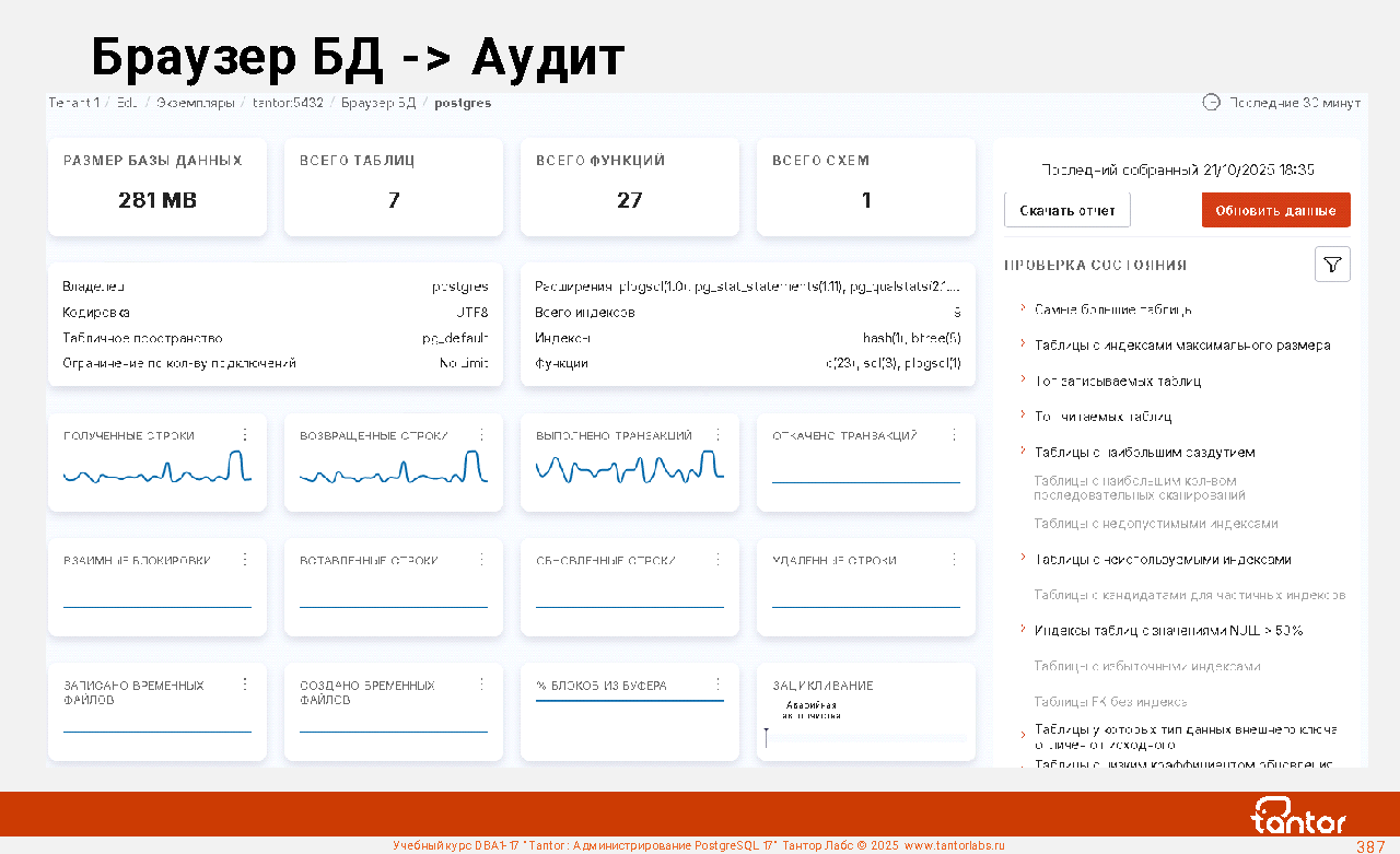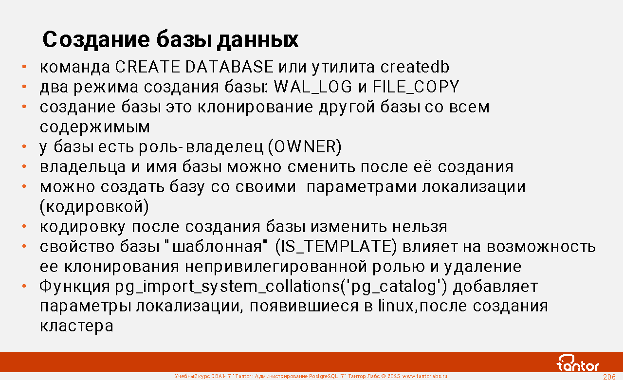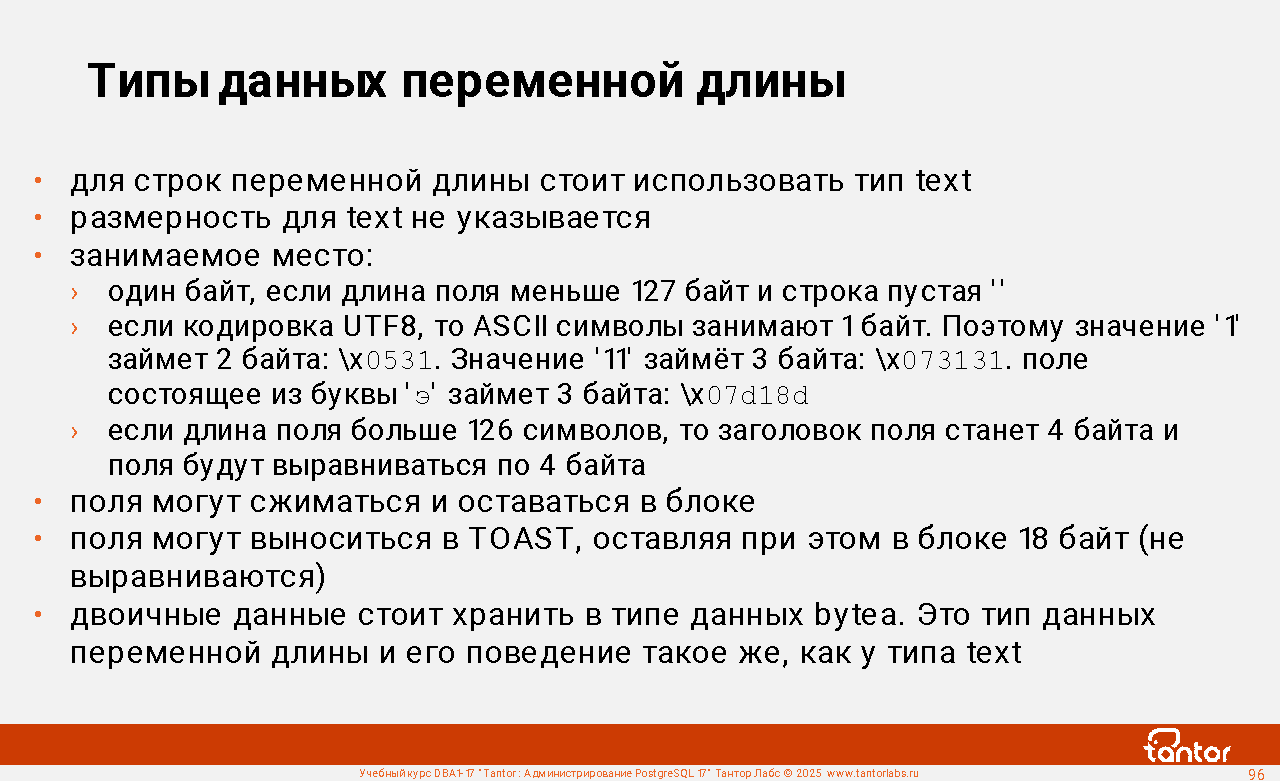 В курсе будут рассмотрены основные задачи администрирования баз данных семейства PostgreSQL на примере СУБД Tantor Postgres и особенности эксплуатации СУБД Tantor Postgres.
