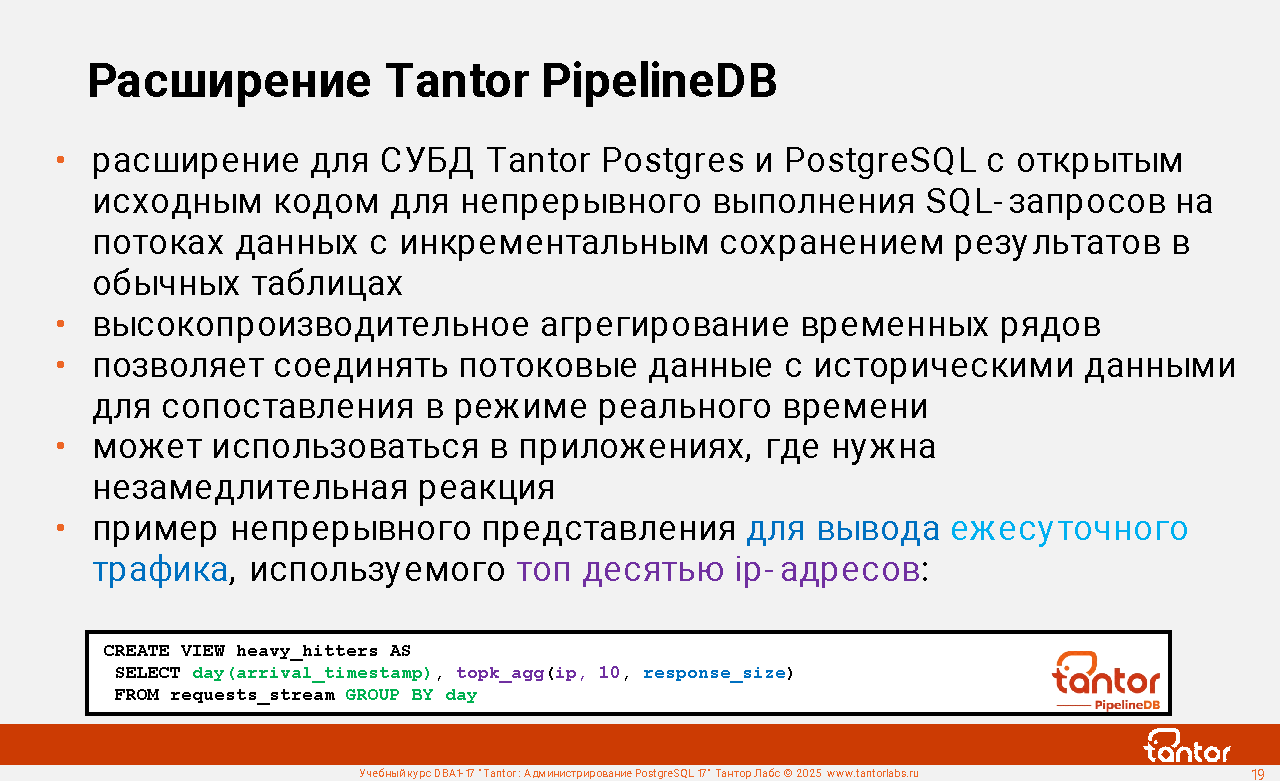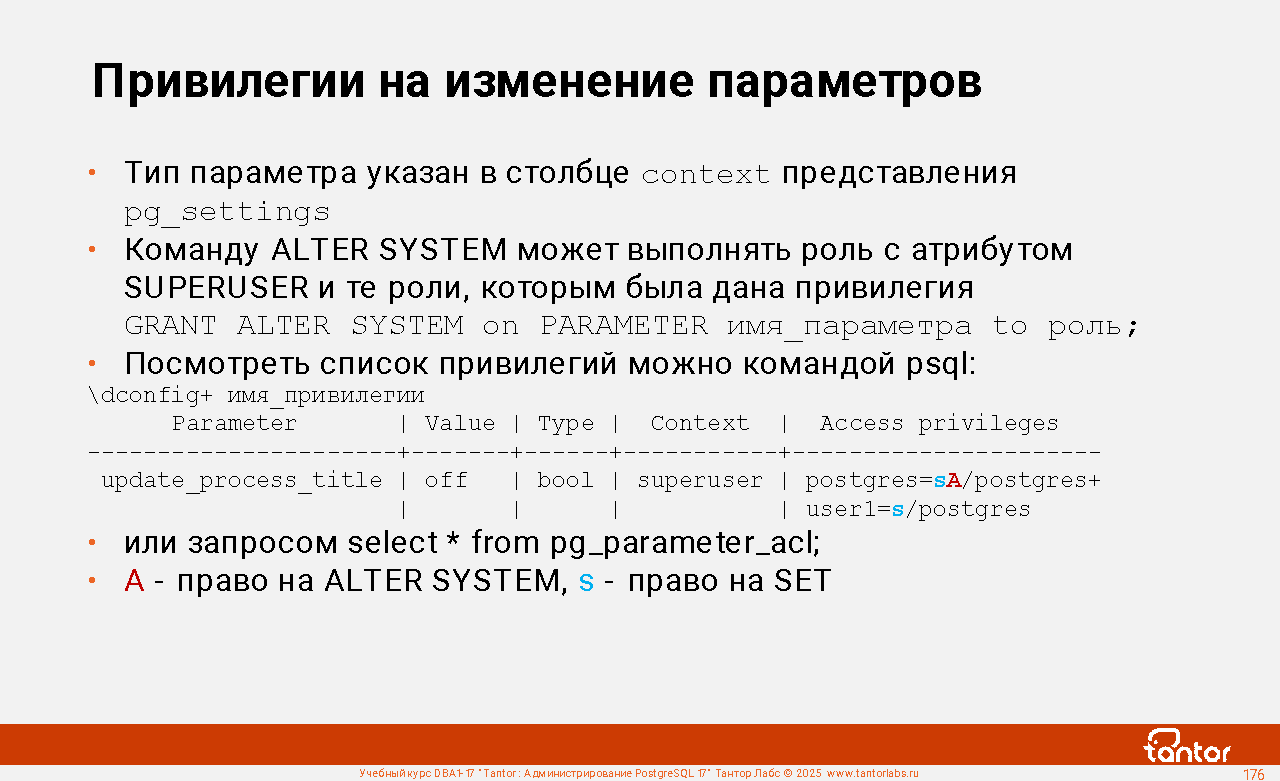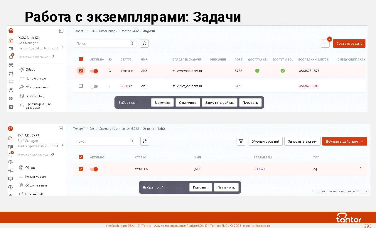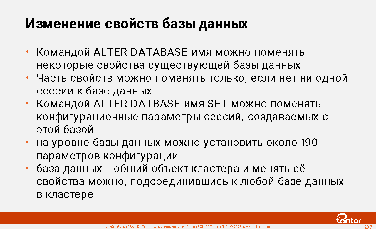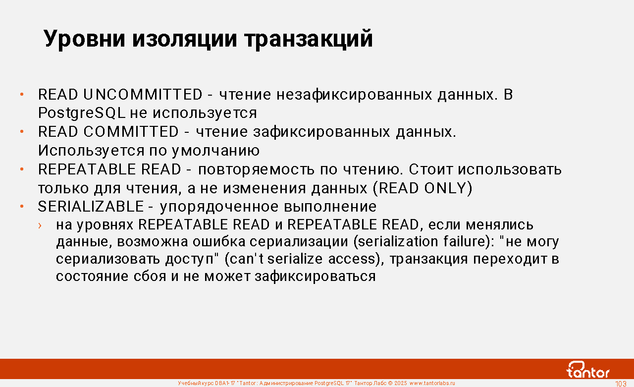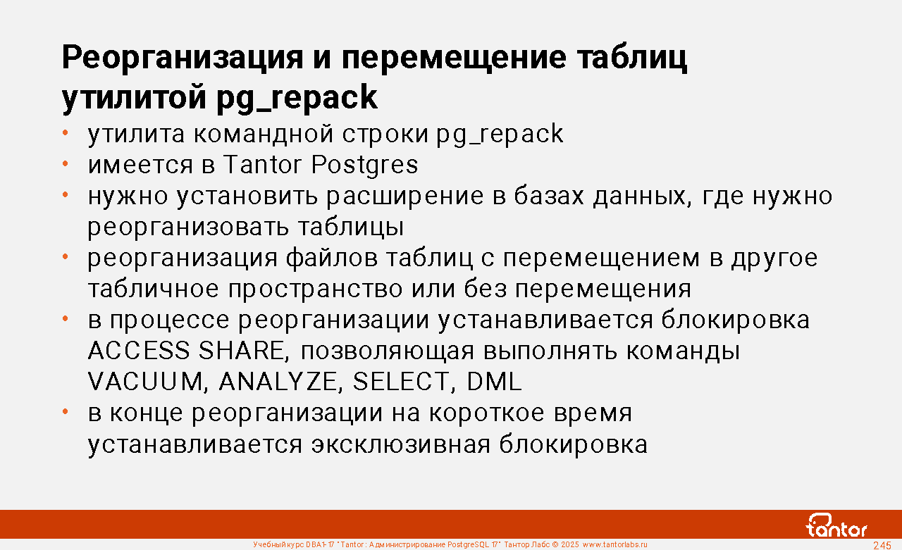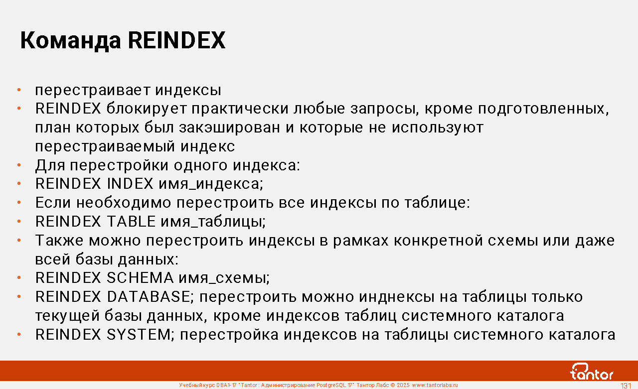 В курсе будут рассмотрены основные задачи администрирования баз данных семейства PostgreSQL на примере СУБД Tantor Postgres и особенности эксплуатации СУБД Tantor Postgres.