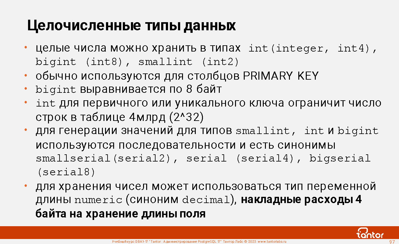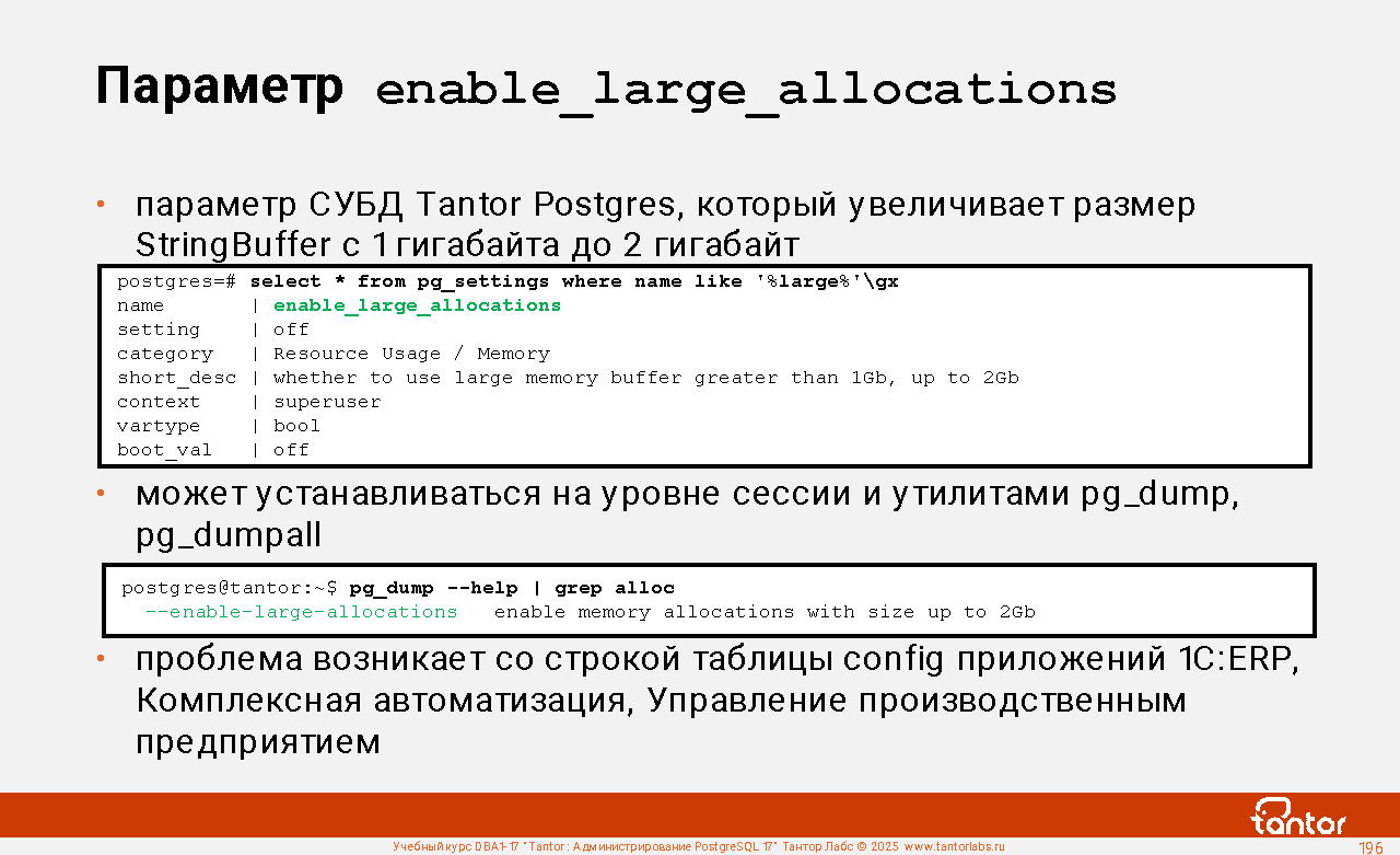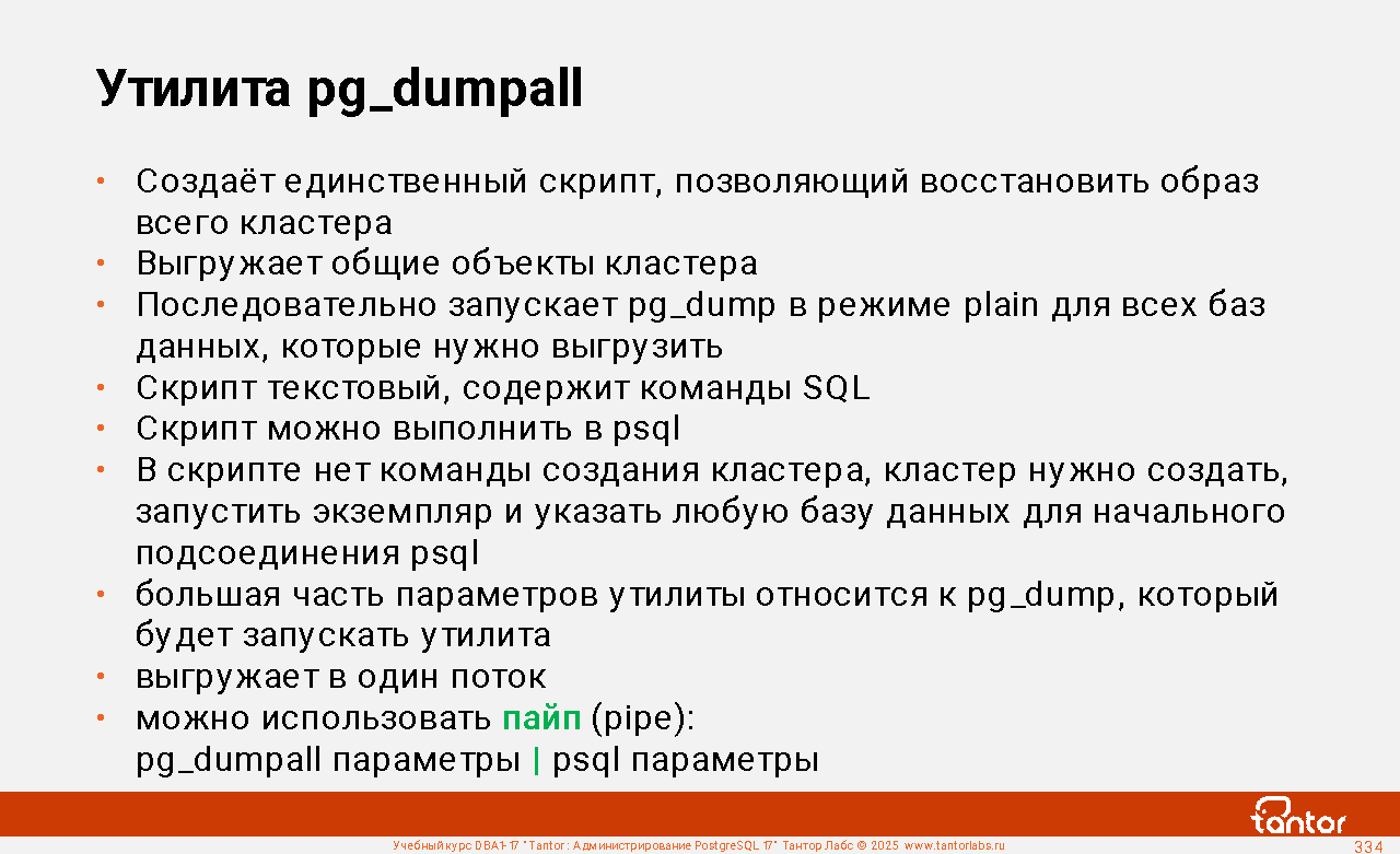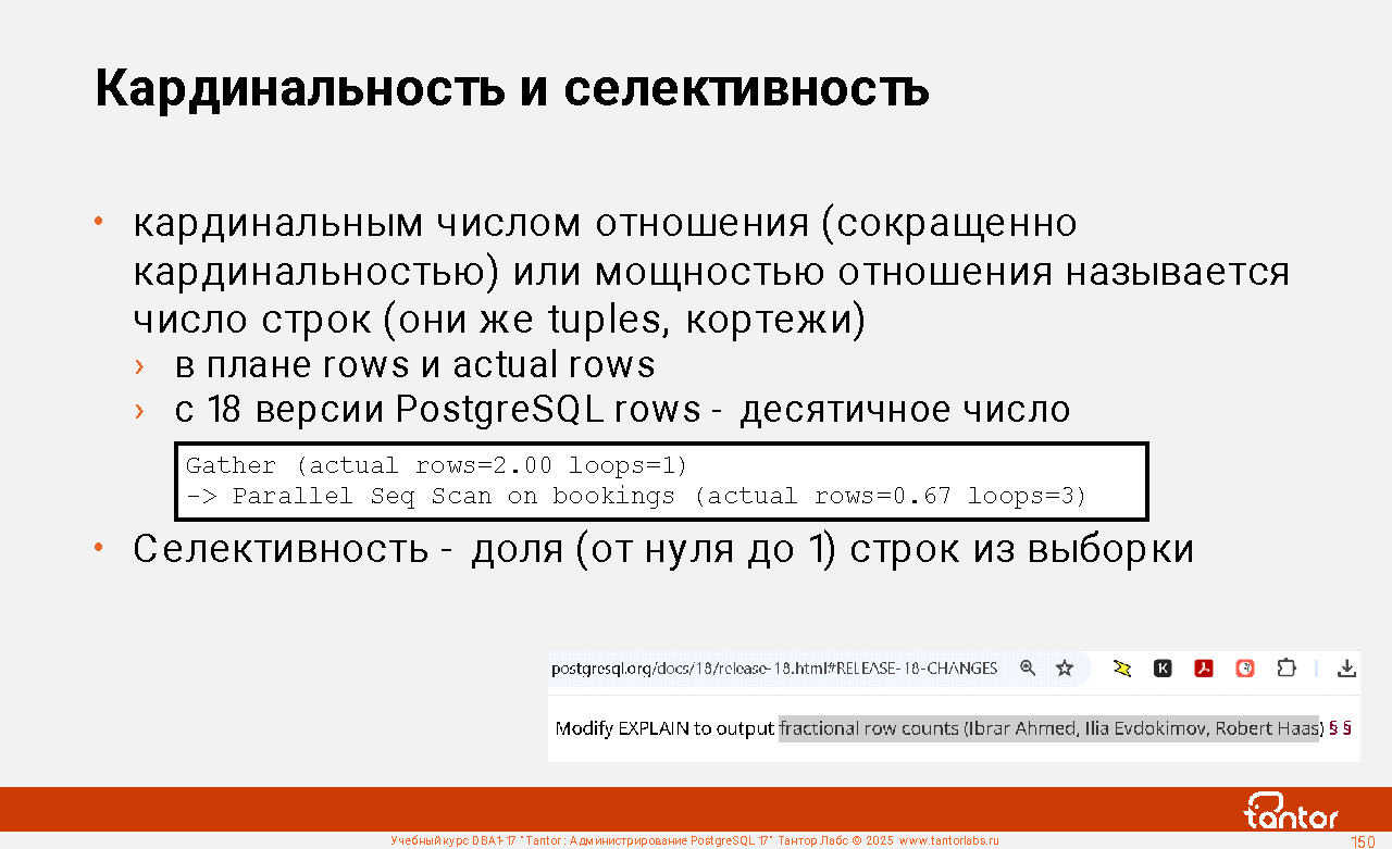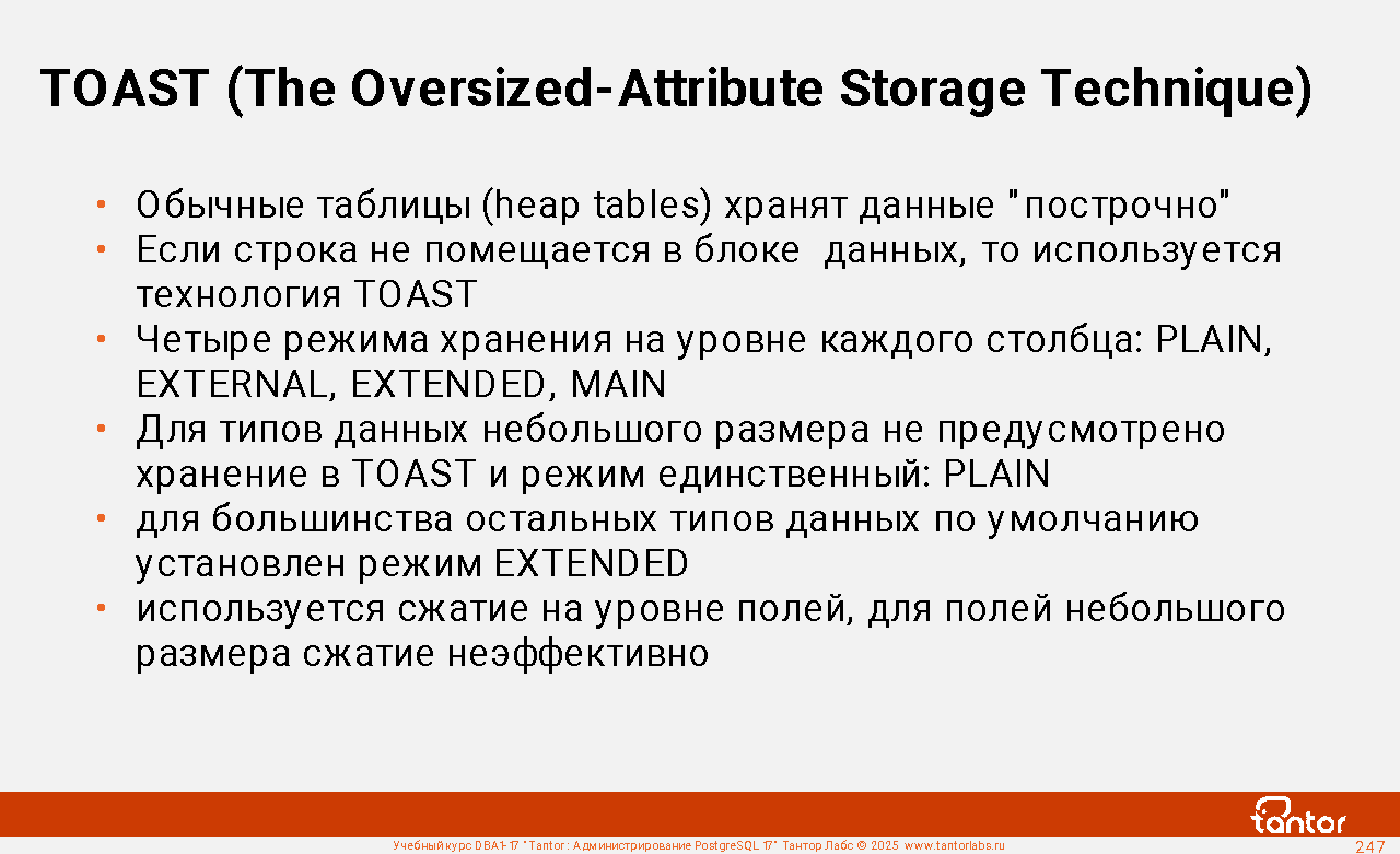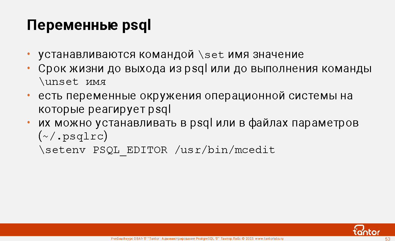 В курсе будут рассмотрены основные задачи администрирования баз данных семейства PostgreSQL на примере СУБД Tantor Postgres и особенности эксплуатации СУБД Tantor Postgres.