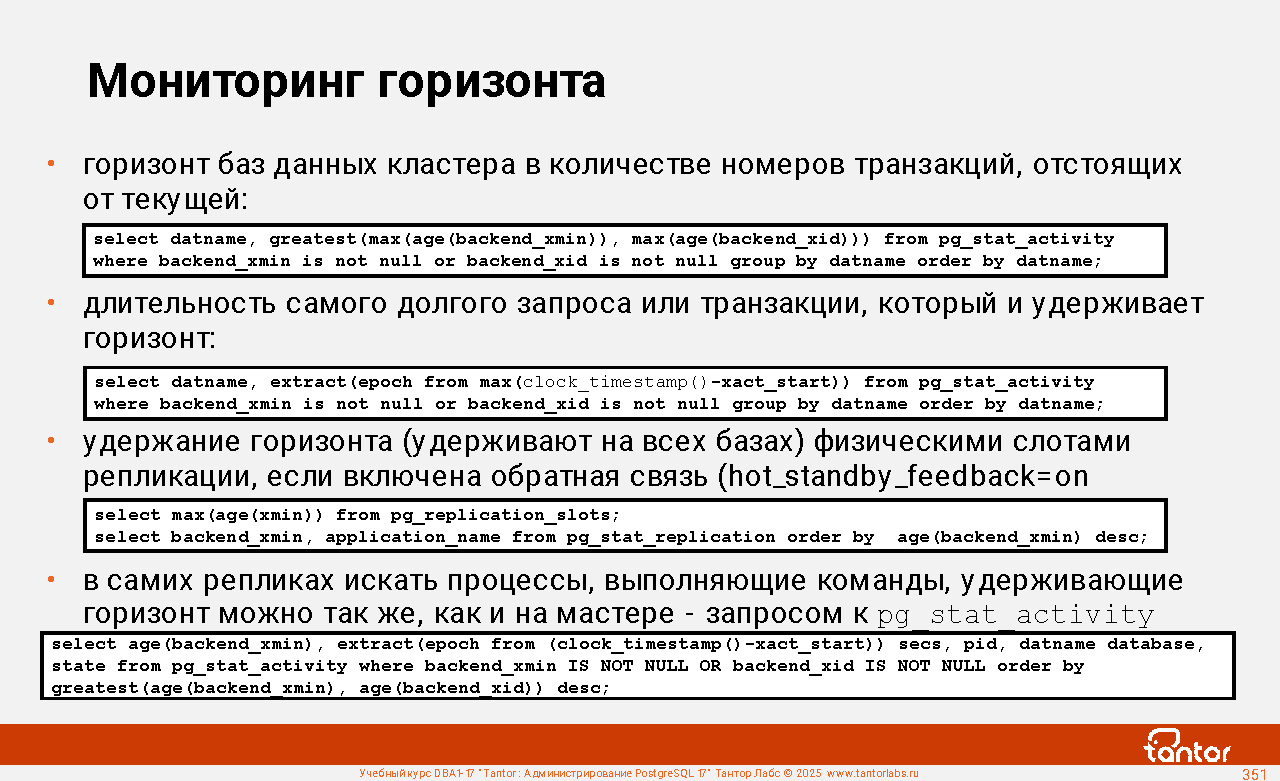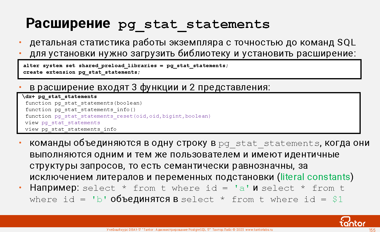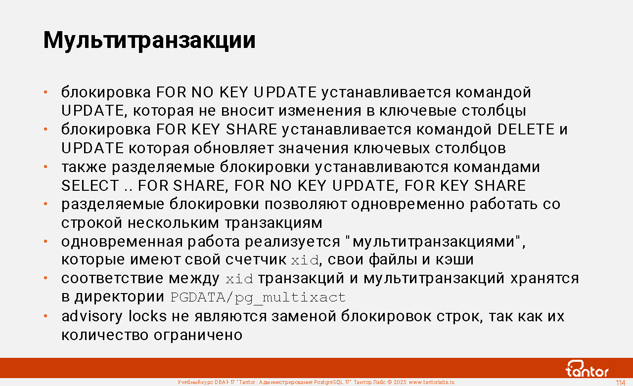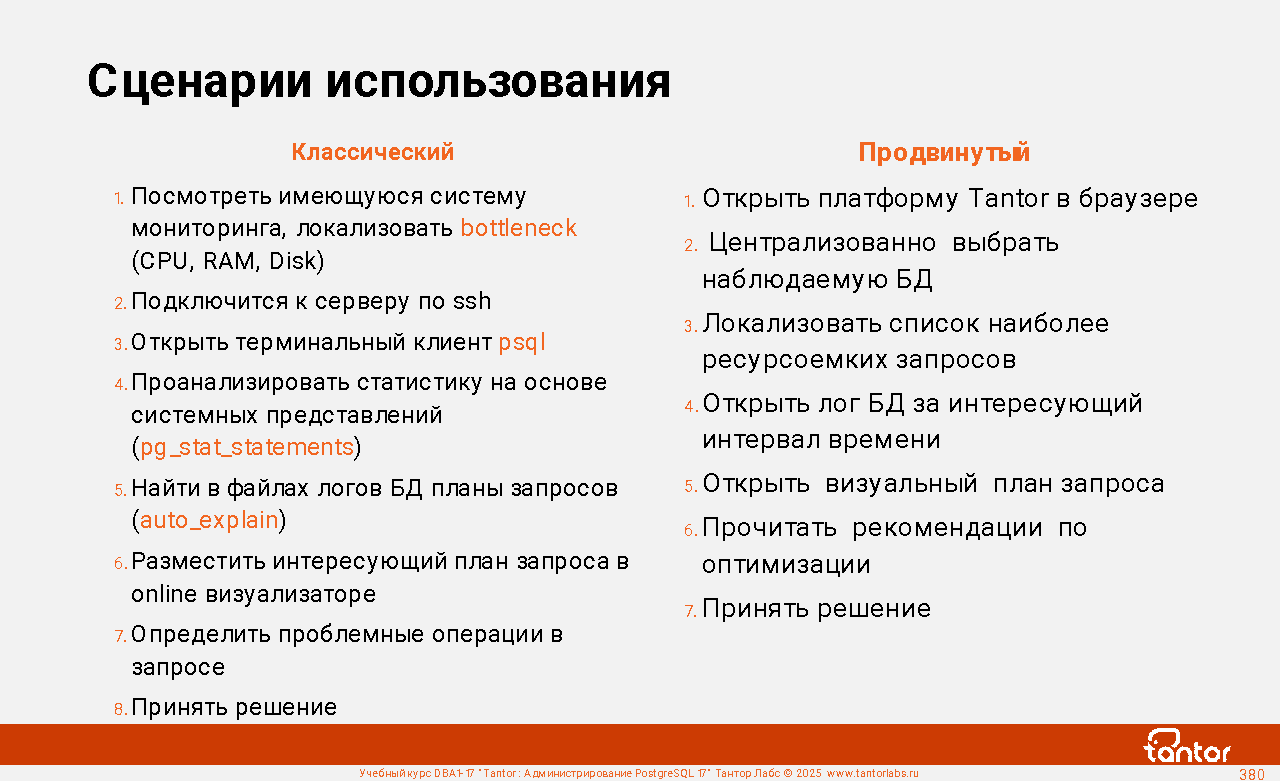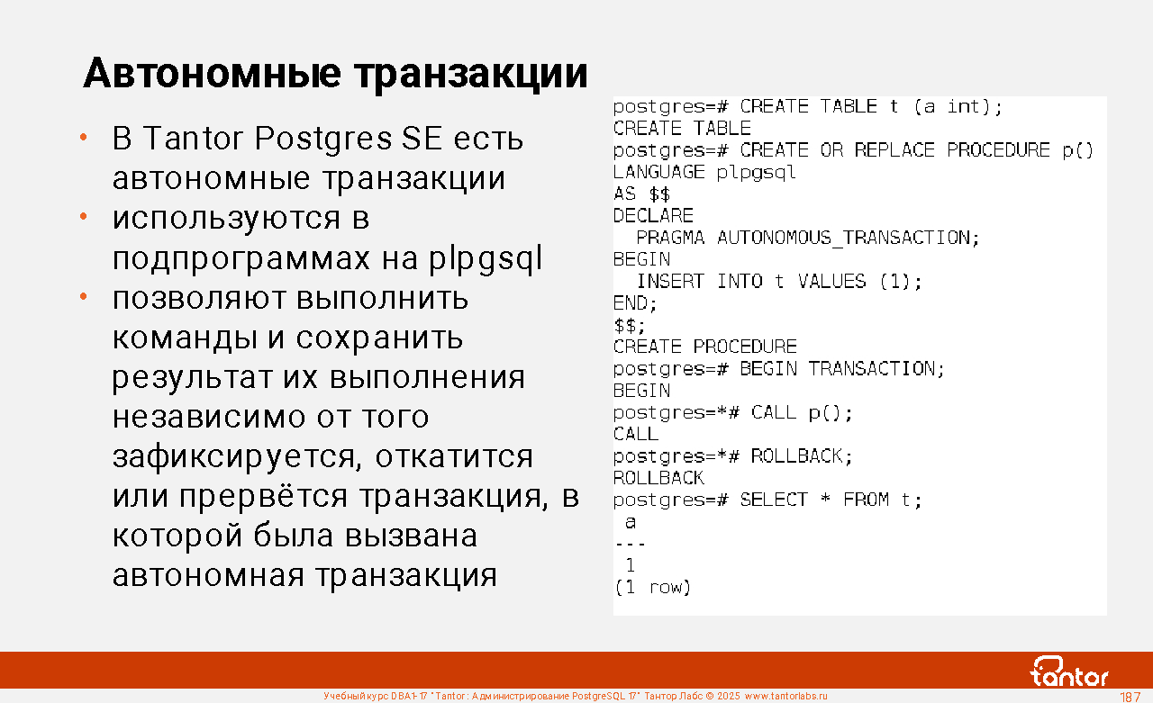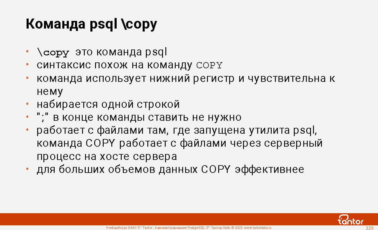 В курсе будут рассмотрены основные задачи администрирования баз данных семейства PostgreSQL на примере СУБД Tantor Postgres и особенности эксплуатации СУБД Tantor Postgres.