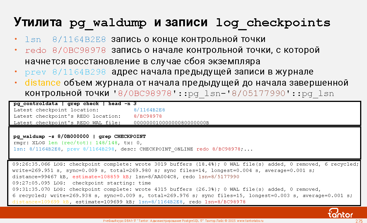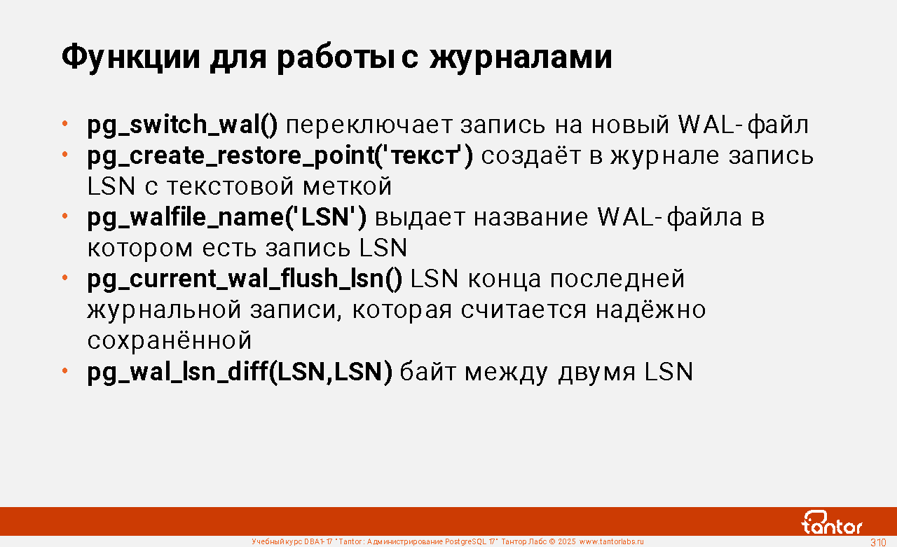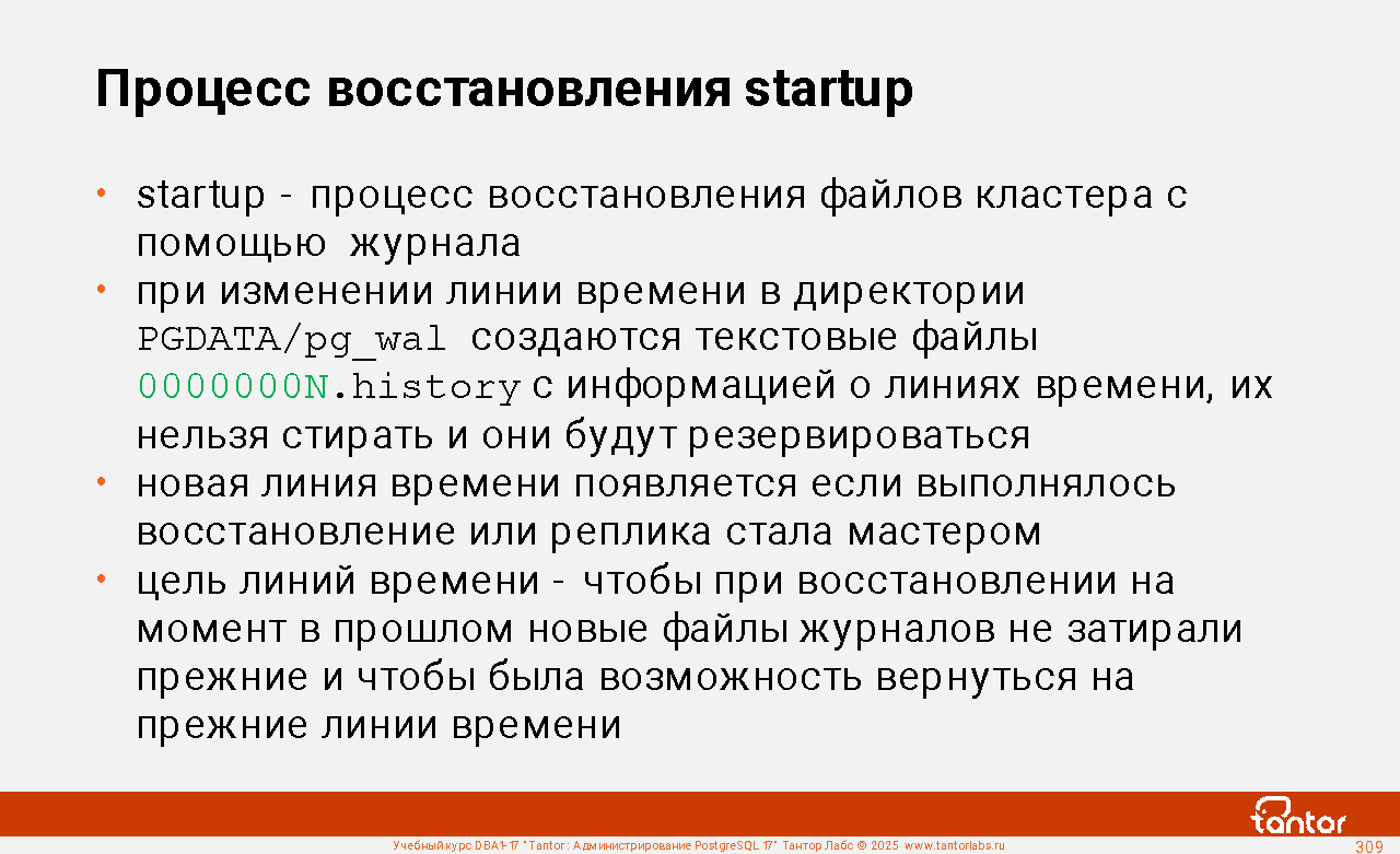 2) восстанавливать кластер на выбранный момент времени в прошлом. Из хранилища возможно восстановить WAL-сегменты кроме текущего (в который писали процессы экземпляра в момент остановки кластера). Полное восстановление (без потери транзакций) возможно только, если текущий WAL-сегмент не был потерян