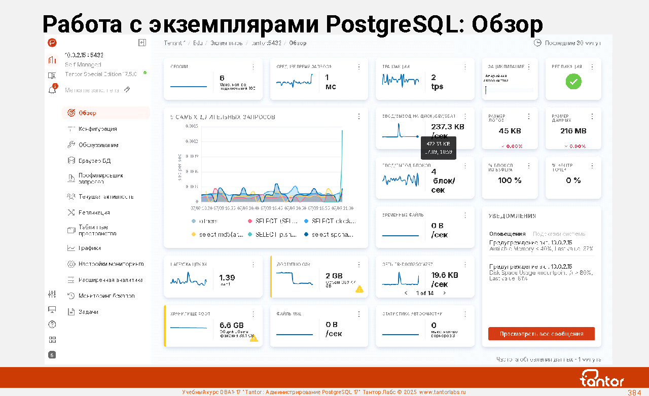 Преимуществом при эксплуатации xData является наличие в составе ПАК удобной графической системы мониторинга работы СУБД: Платформы Tantor.