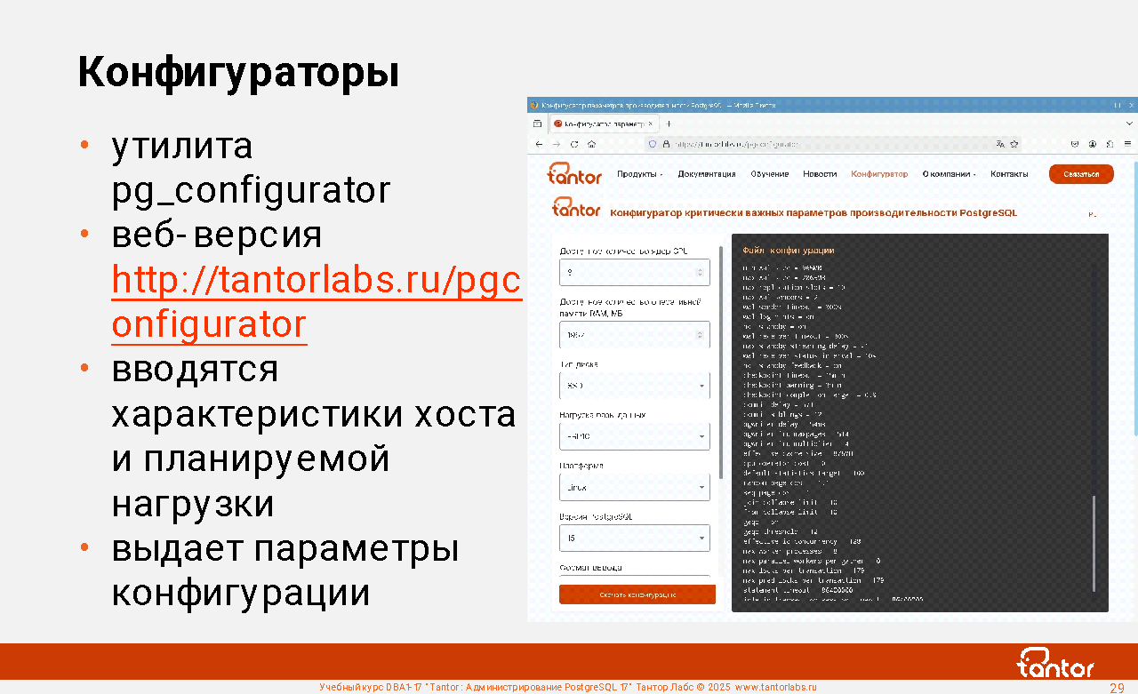 Веб-версия конфигуратора: https://tantorlabs.ru/pgconfigurator