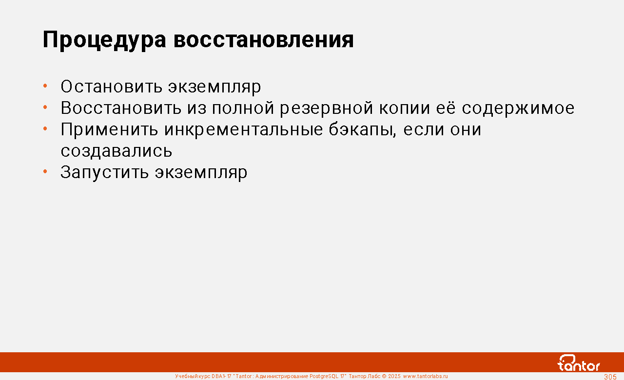 Пример команды восстановления из бэкапа (экземпляр должен быть остановлен):