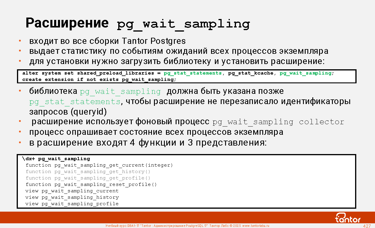 pg_trace - трассировка работающих запросов SQL. Для получения трассировки нужен клиент, который подключится на порт фонового процесса и будет получать отладочную информацию в формате json. Пример использования для анализа запросов в 1С и пример клиента https://habr.com/ru/companies/tantor/articles/915256/