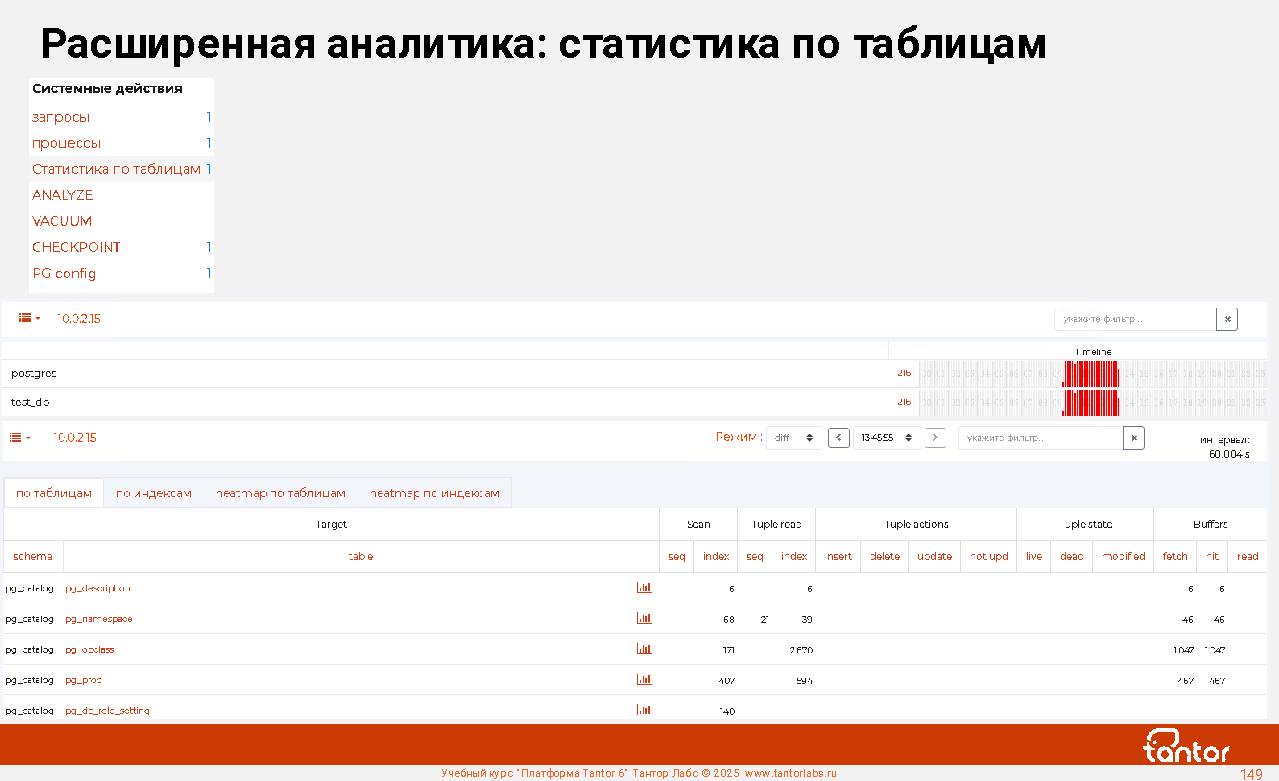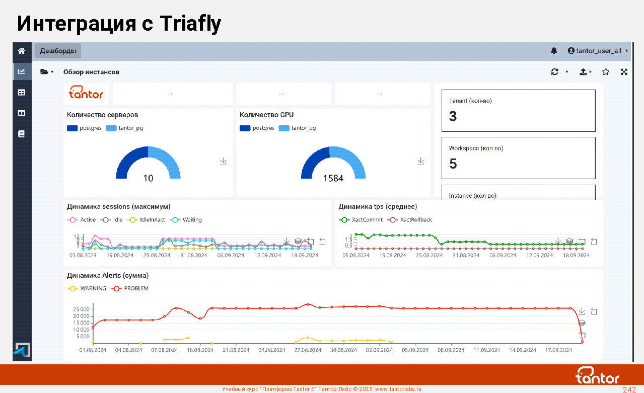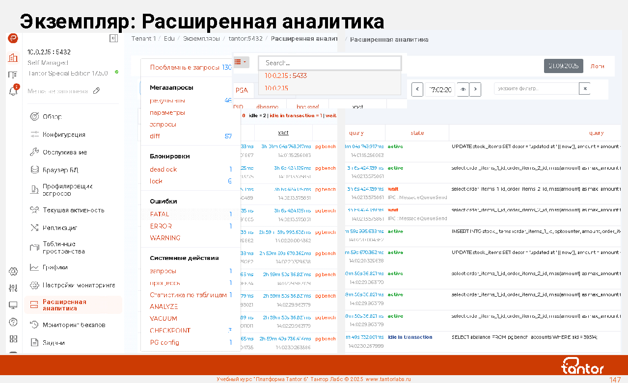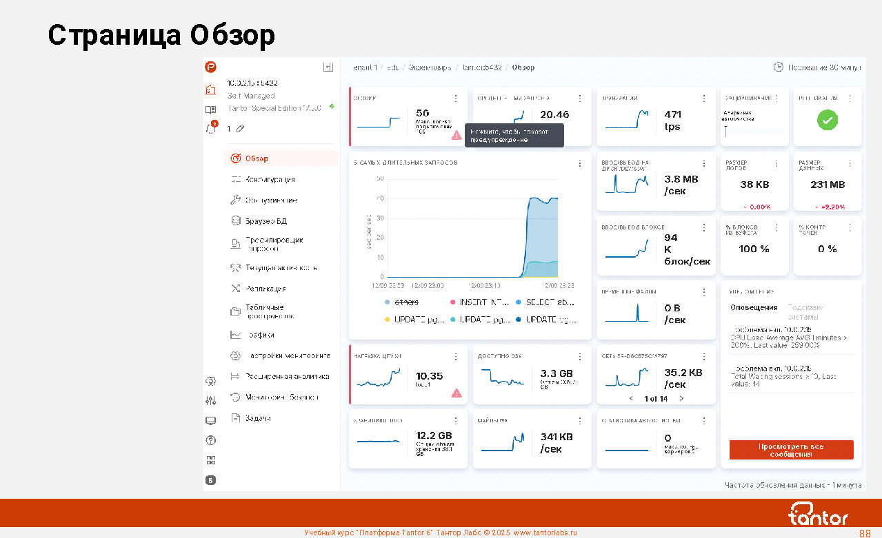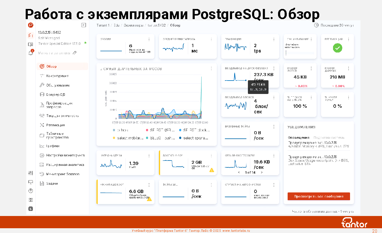 Преимуществом при эксплуатации xData является наличие в составе ПАК удобной графической системы мониторинга работы СУБД: Платформы Tantor.