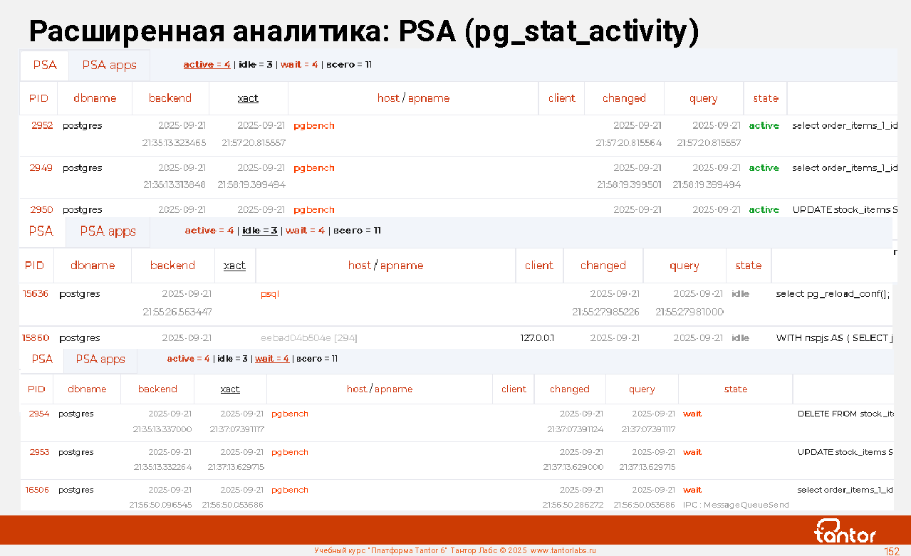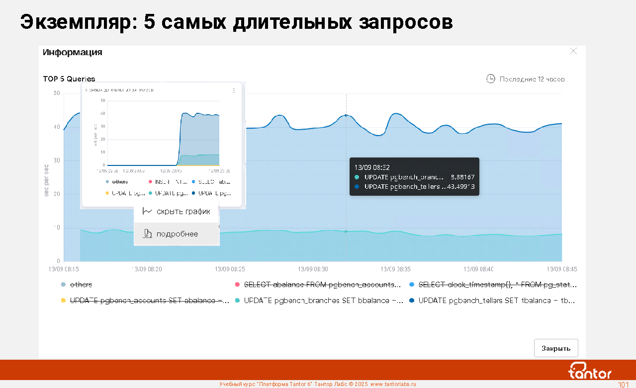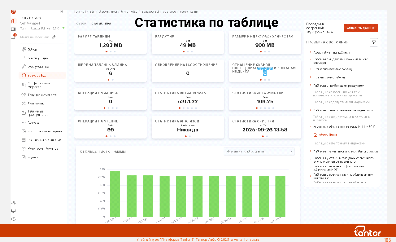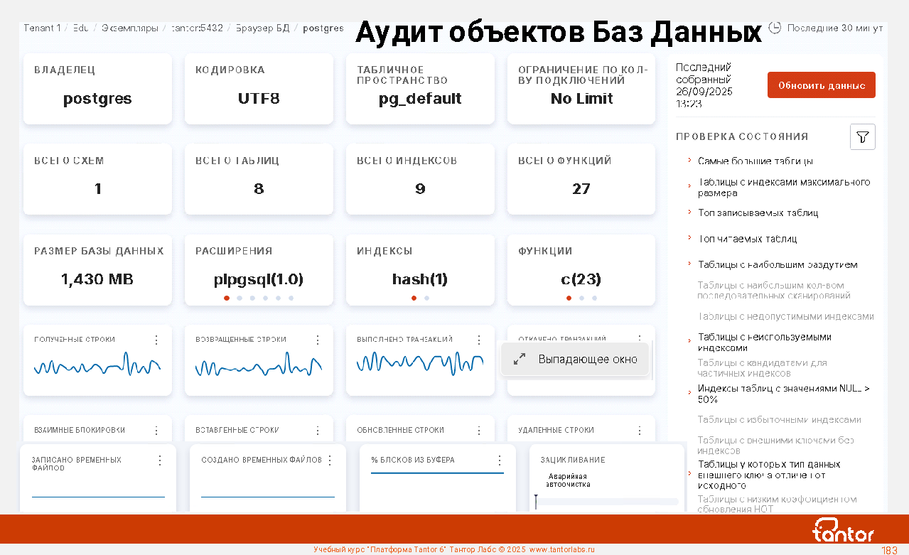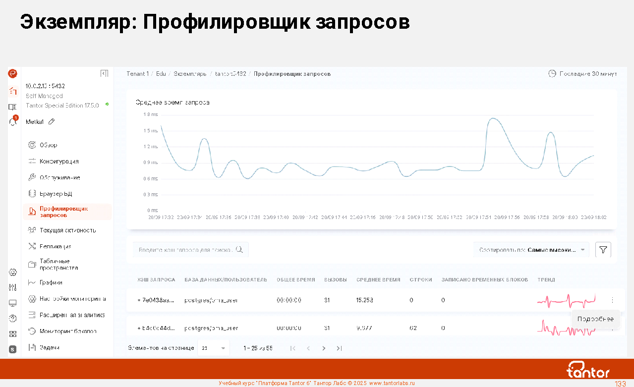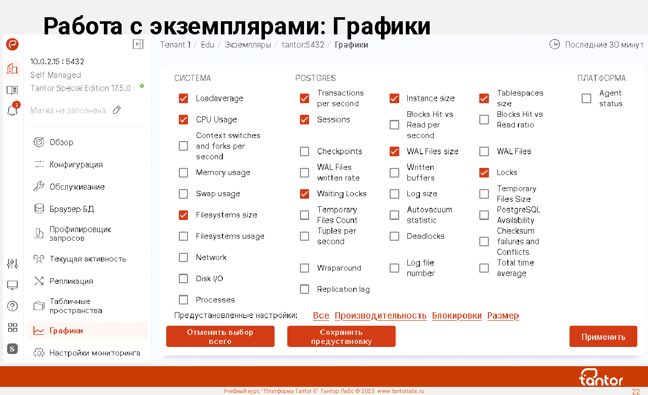 Преимуществом при эксплуатации xData является наличие в составе ПАК удобной графической системы мониторинга работы СУБД: Платформы Tantor.