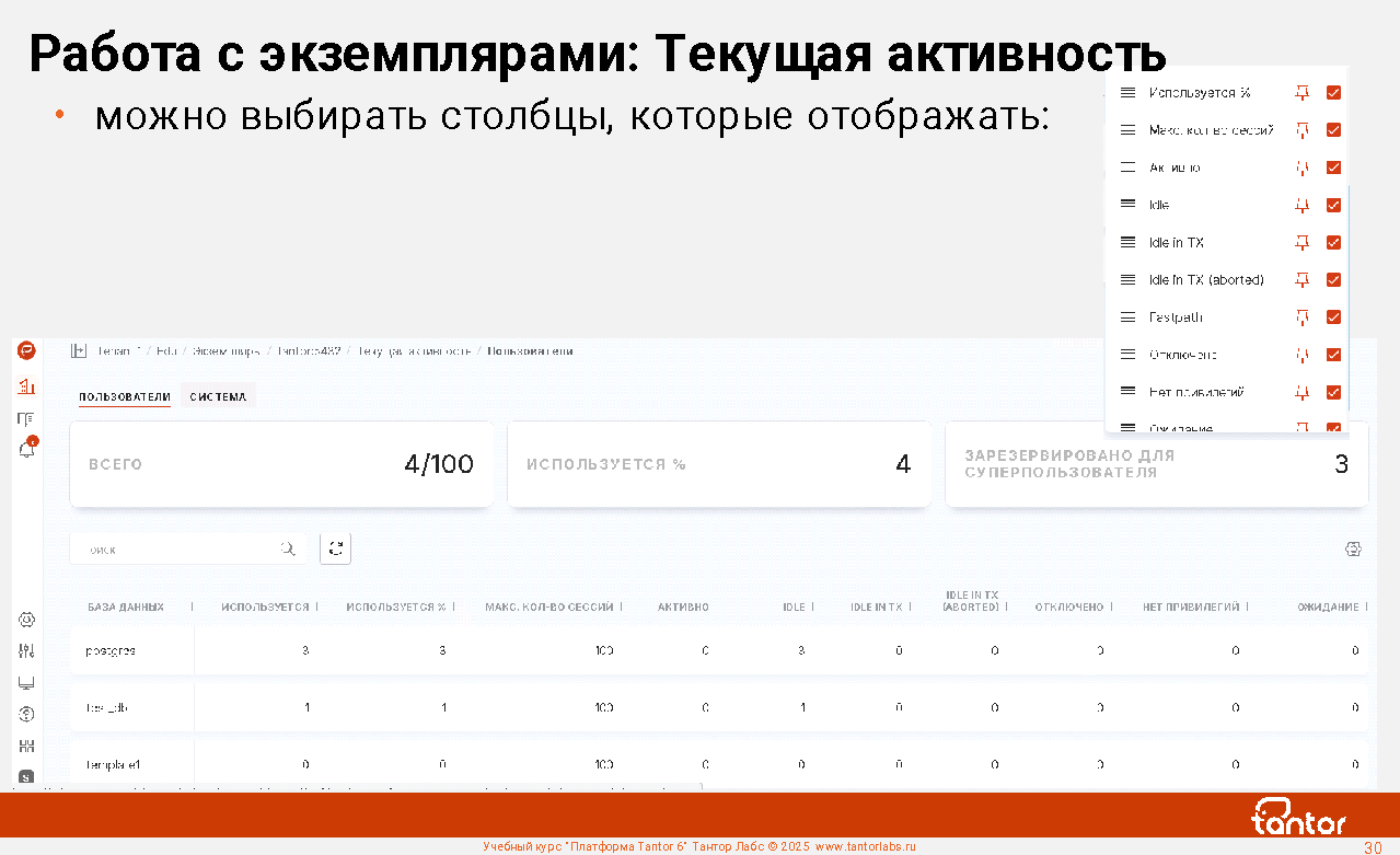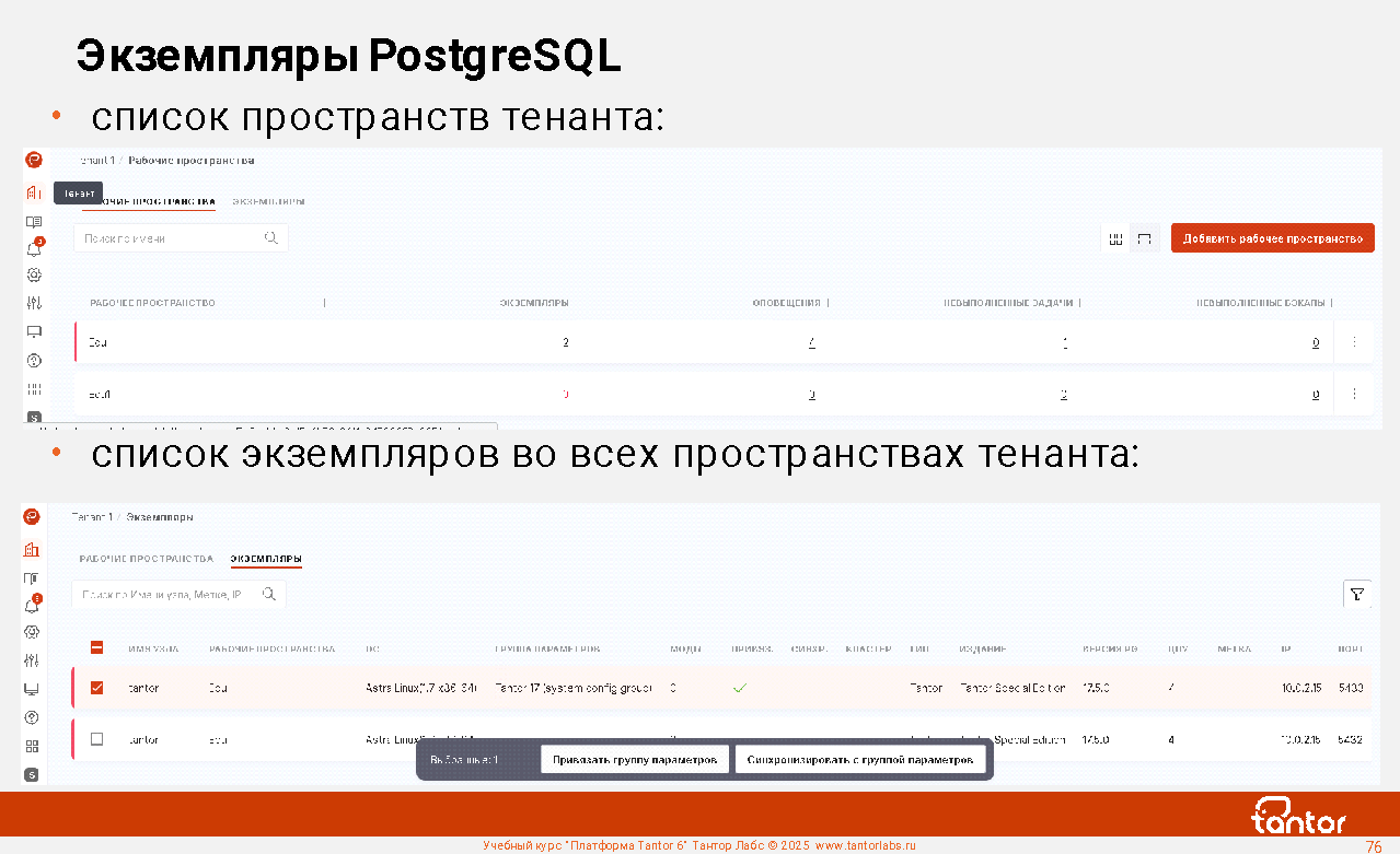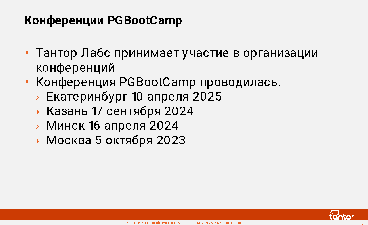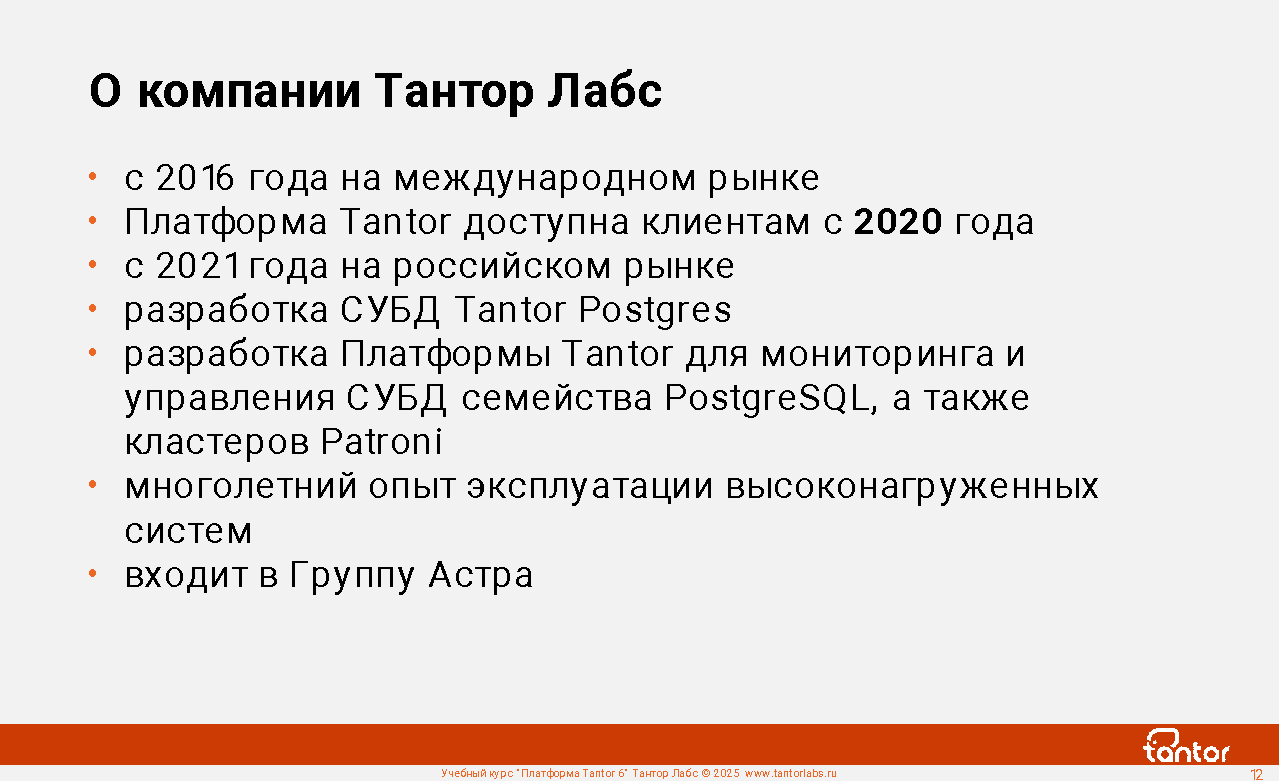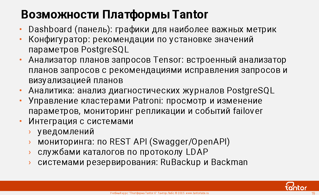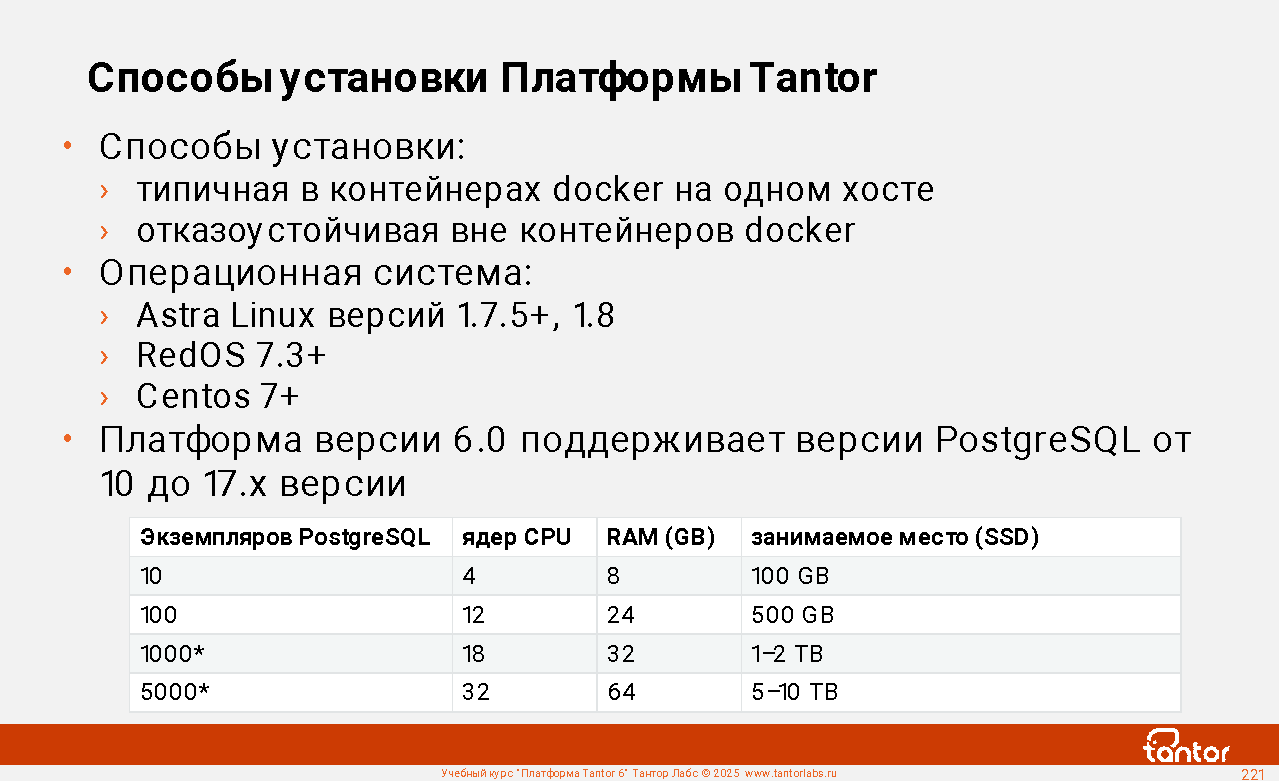 В курсе будут рассмотрены возможности Платформы Tantor.