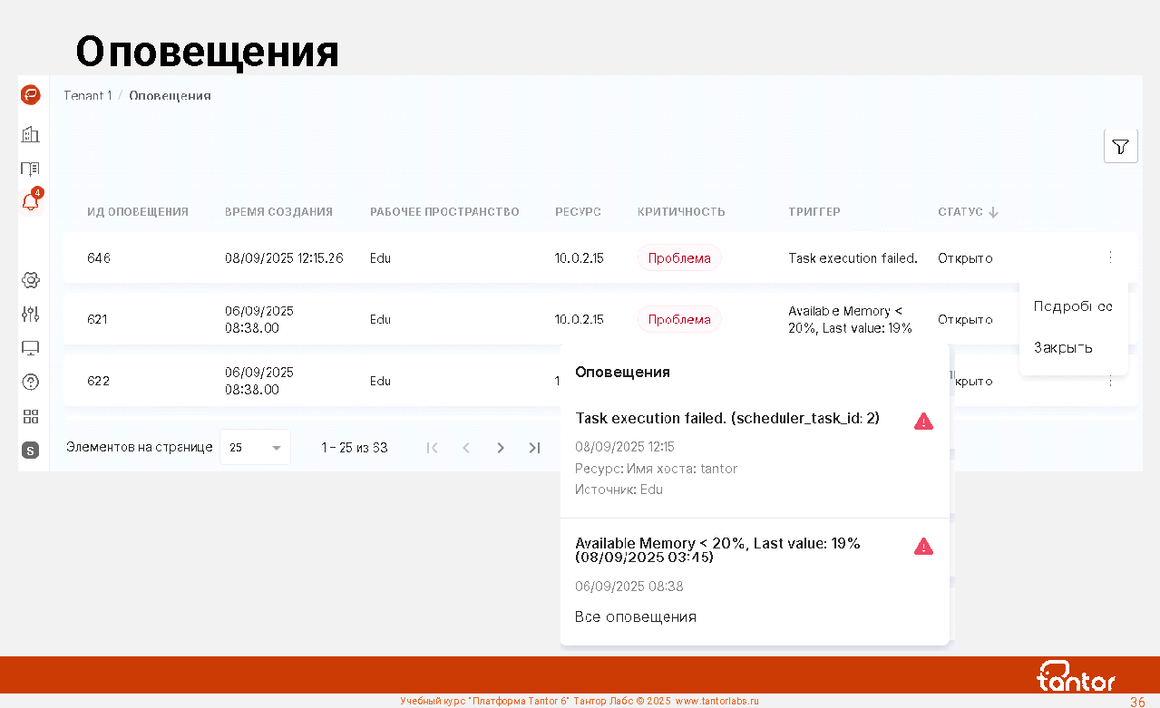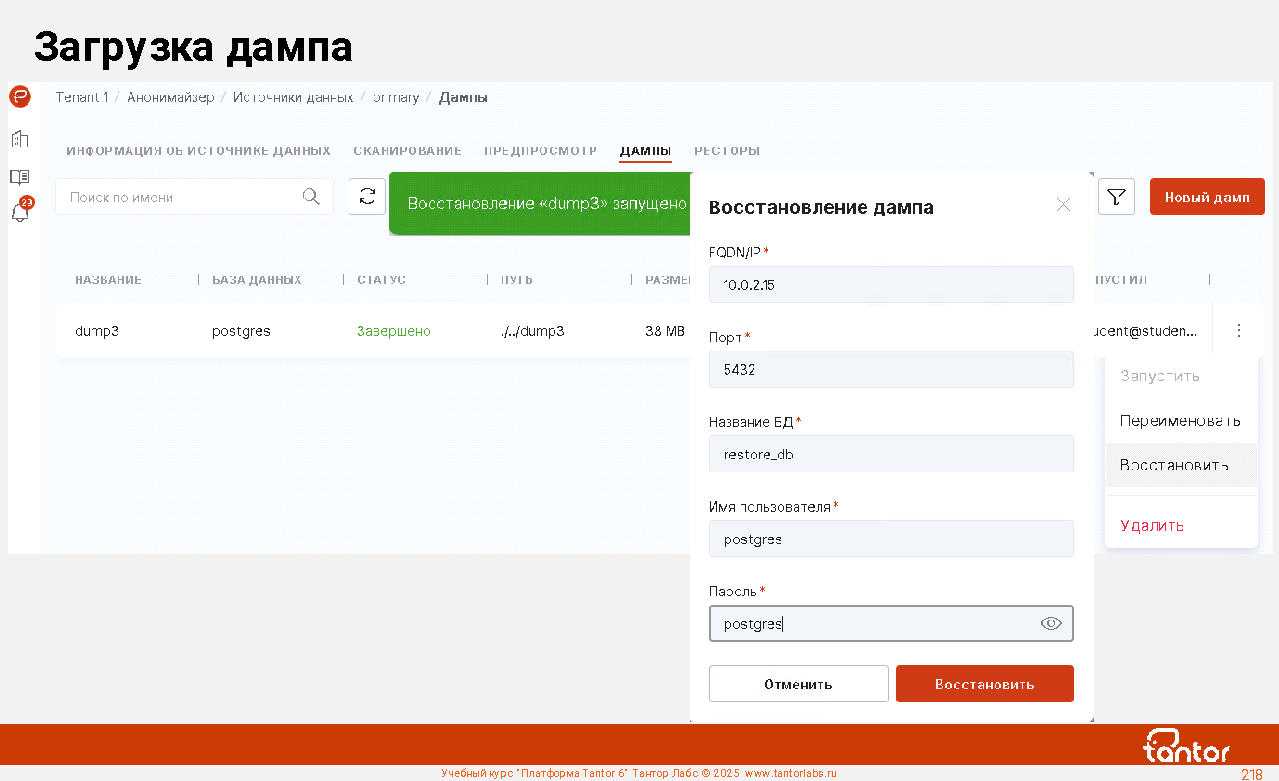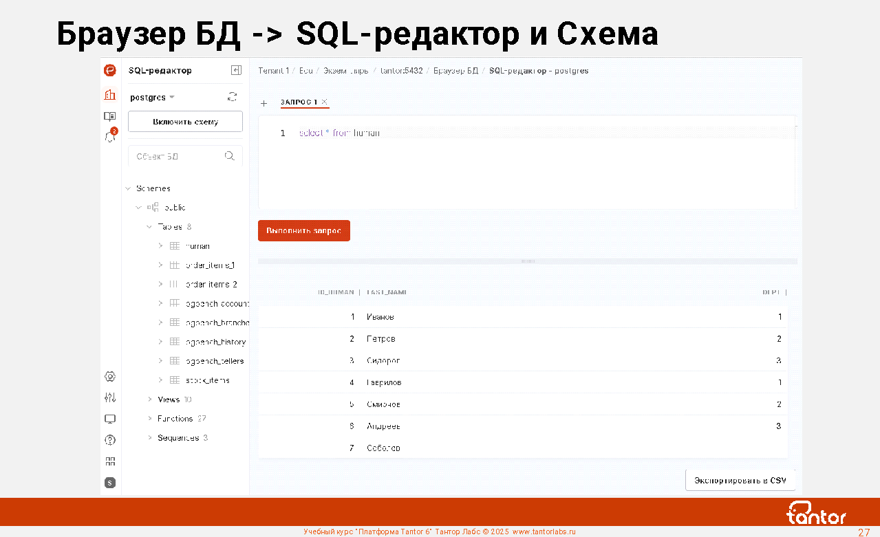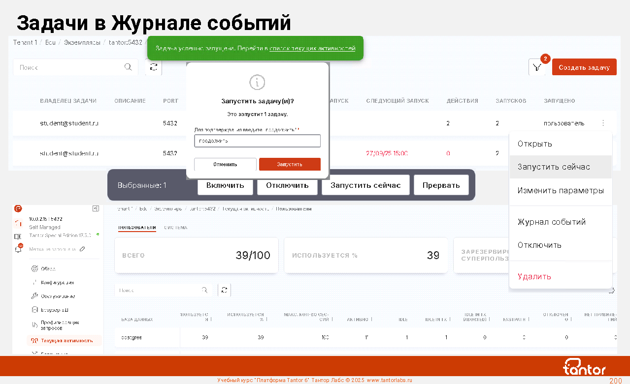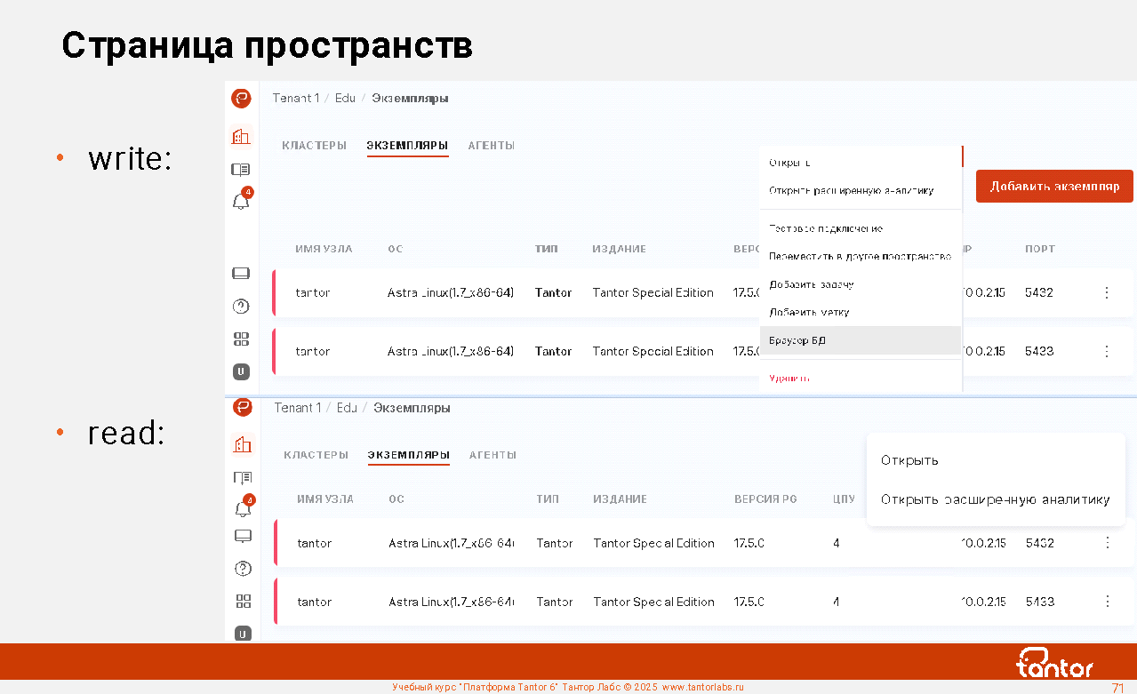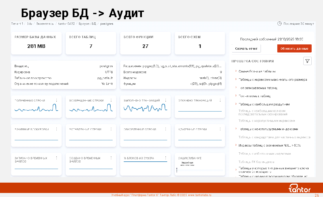 В курсе будут рассмотрены возможности Платформы Tantor.