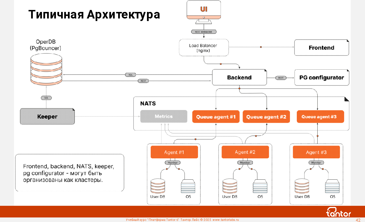 7. Управляет не только СУБД Tantor Postgres, но и другими СУБД семейства PostgreSQL