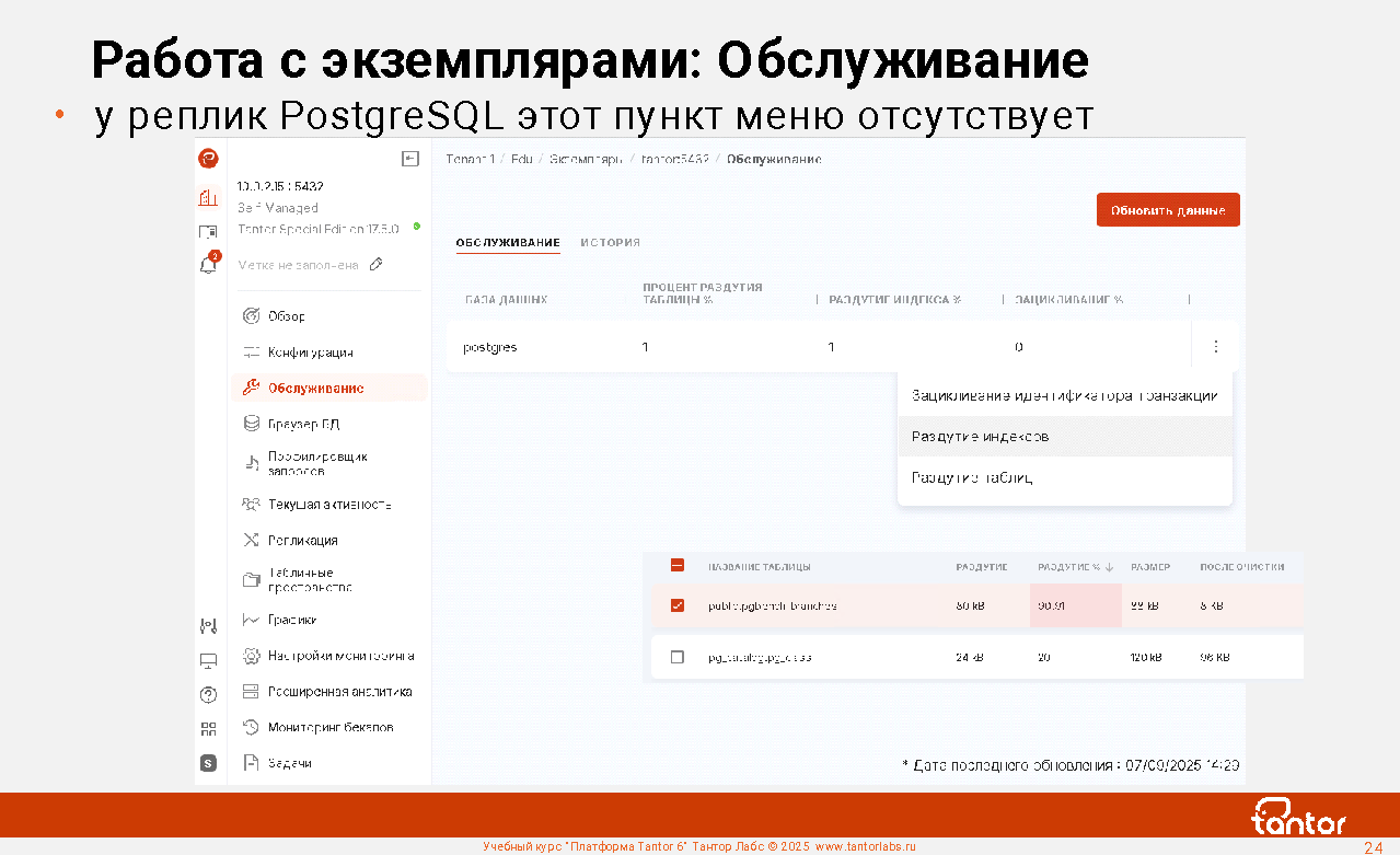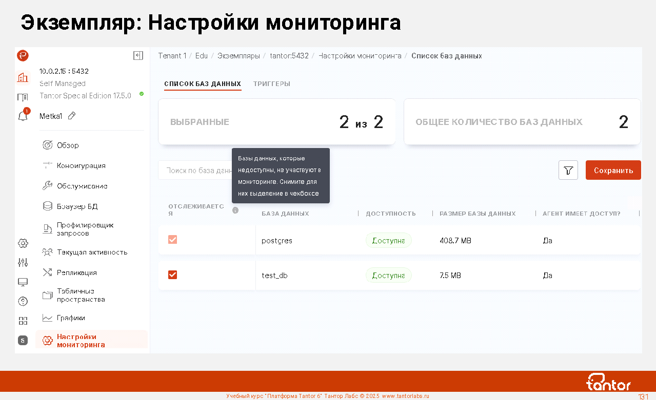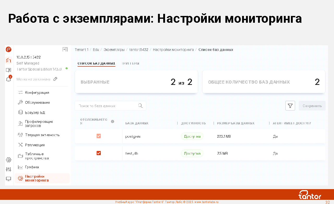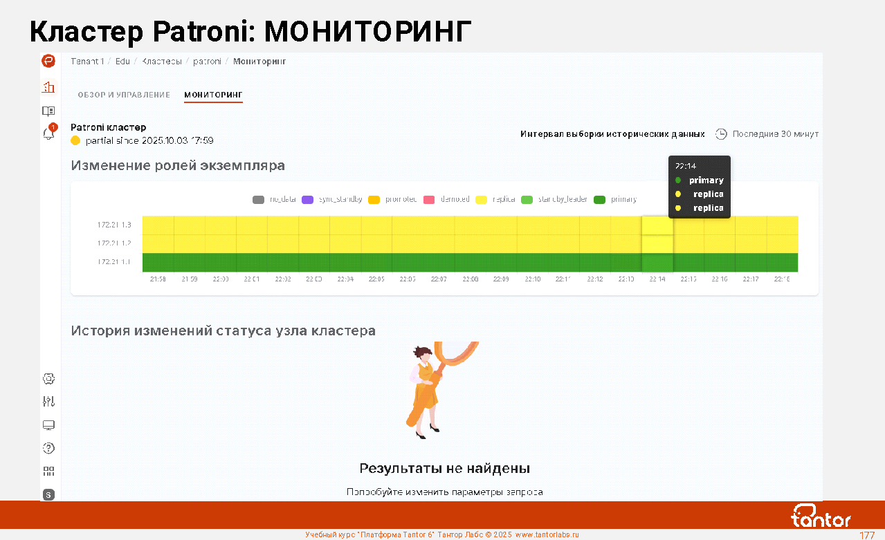 Платформа Tantor - программное обеспечение для управления и мониторинга СУБД Tantor Postgres, любых форков PostgreSQL, кластеров Patroni. Позволяет удобно управлять большим числом экземпляров PostgreSQL.