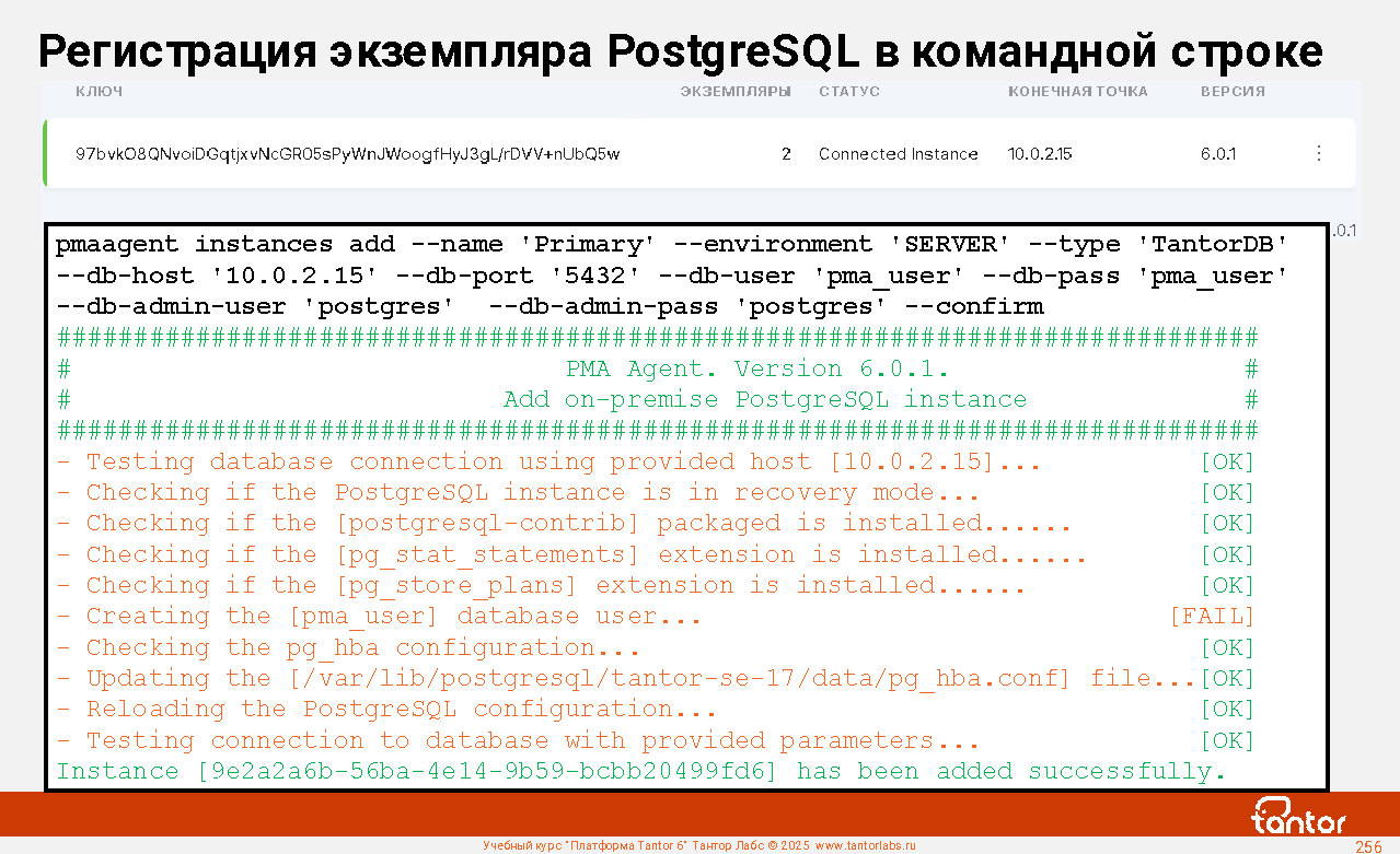 Регистрация экземпляра PostgreSQL в командной строке