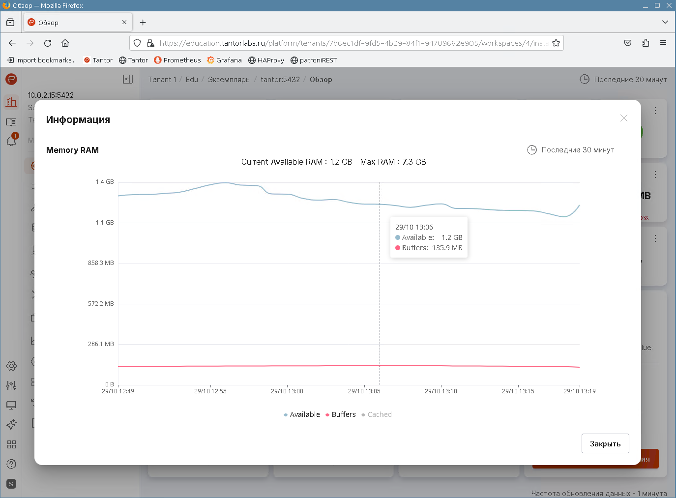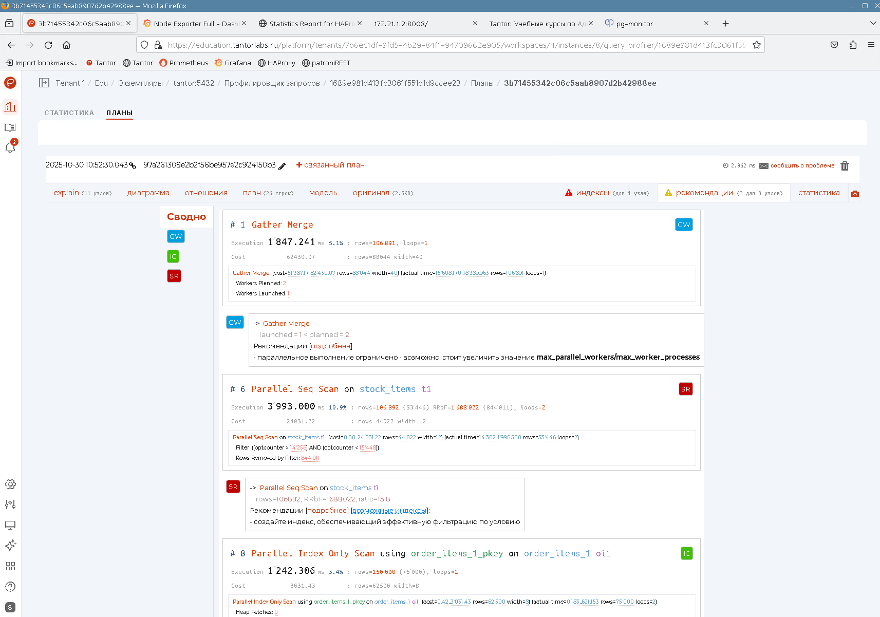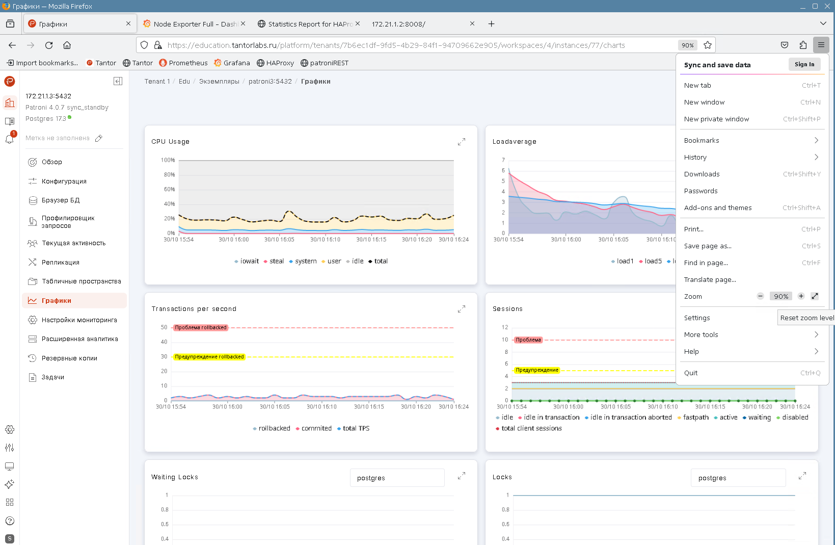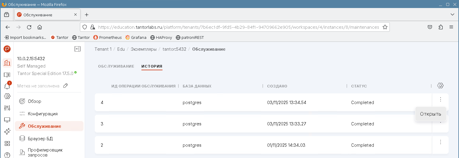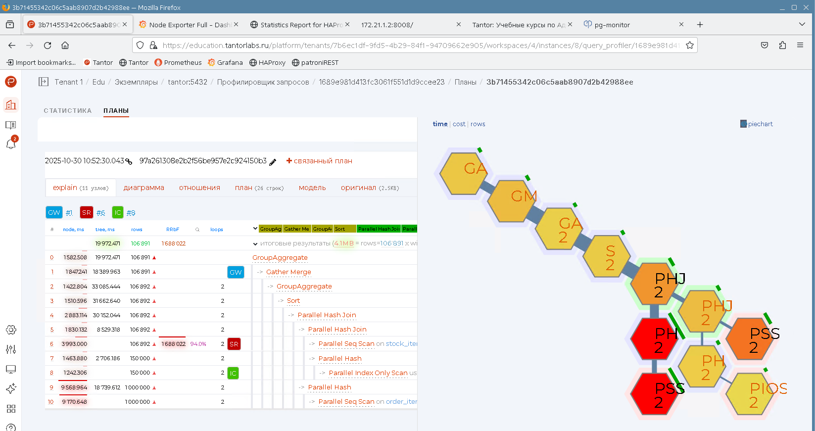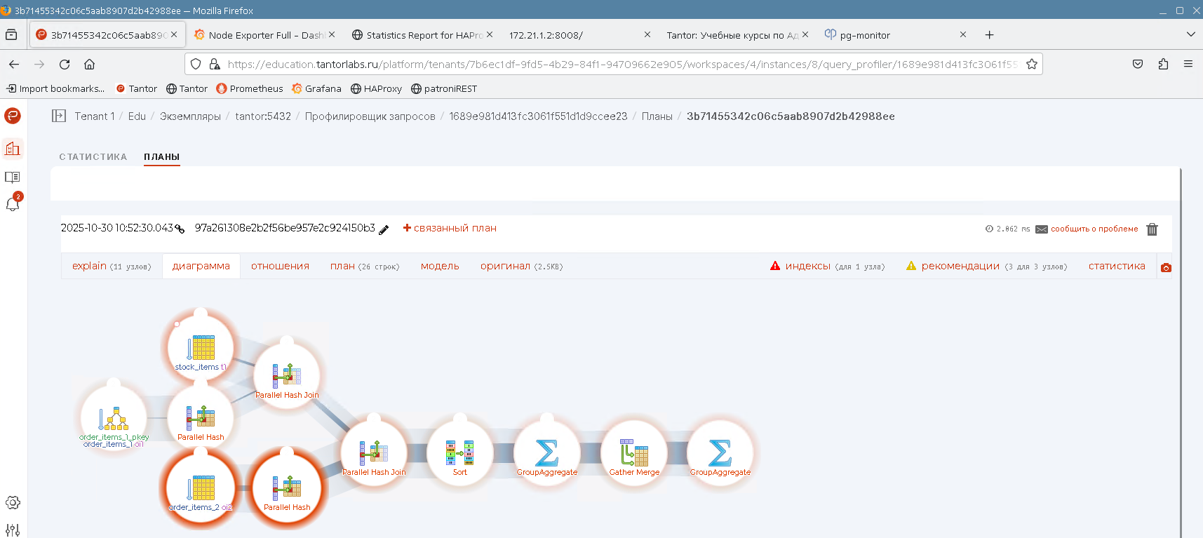 Для проверки того, что рабочие процессы подсоединяются, можно открыть страницу в браузере: https://education.tantorlabs.ru/pg-monitor/hosts