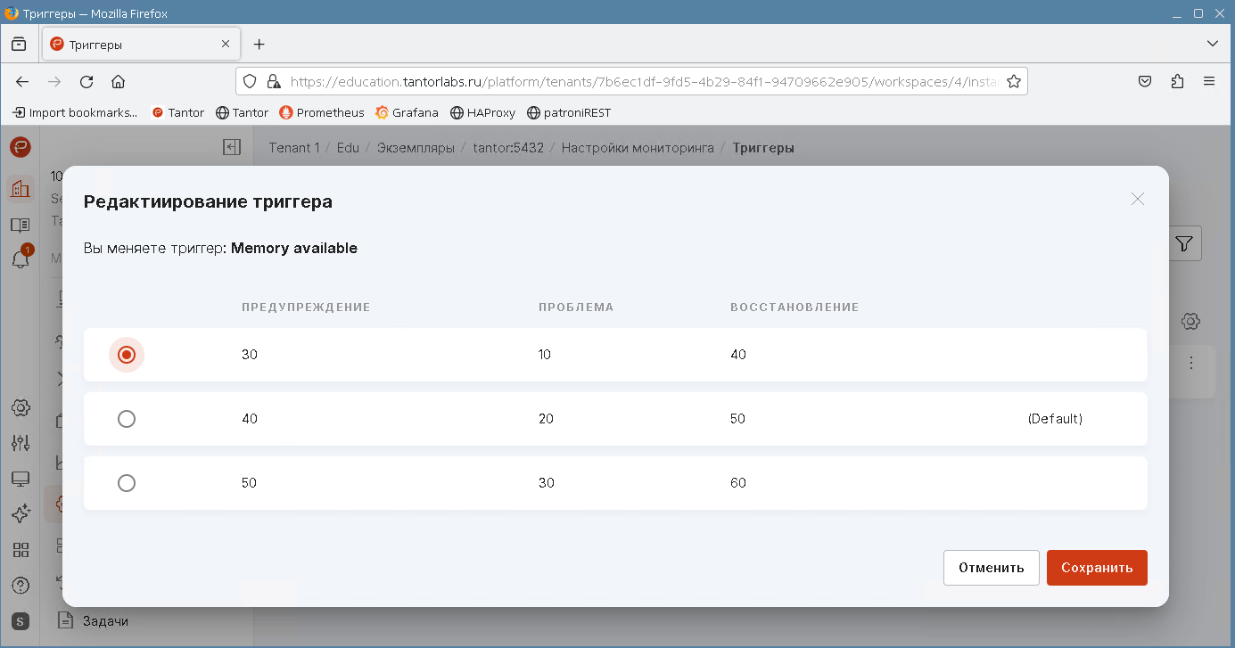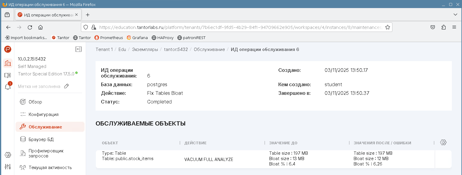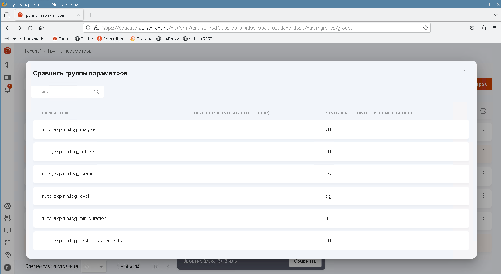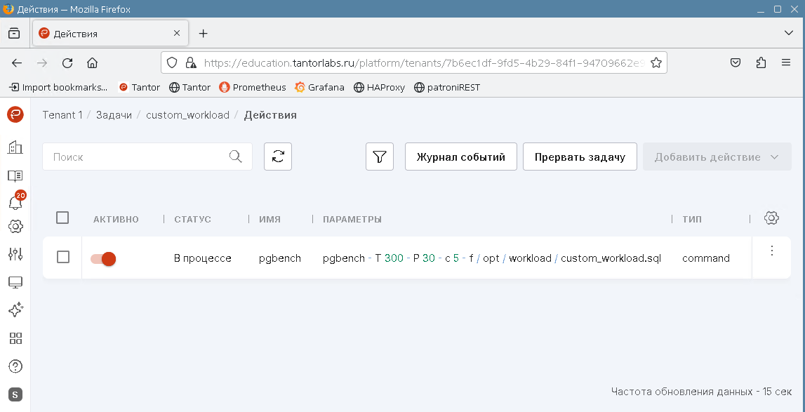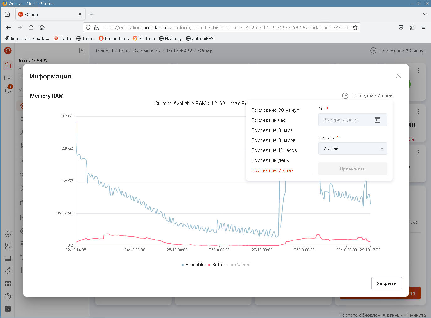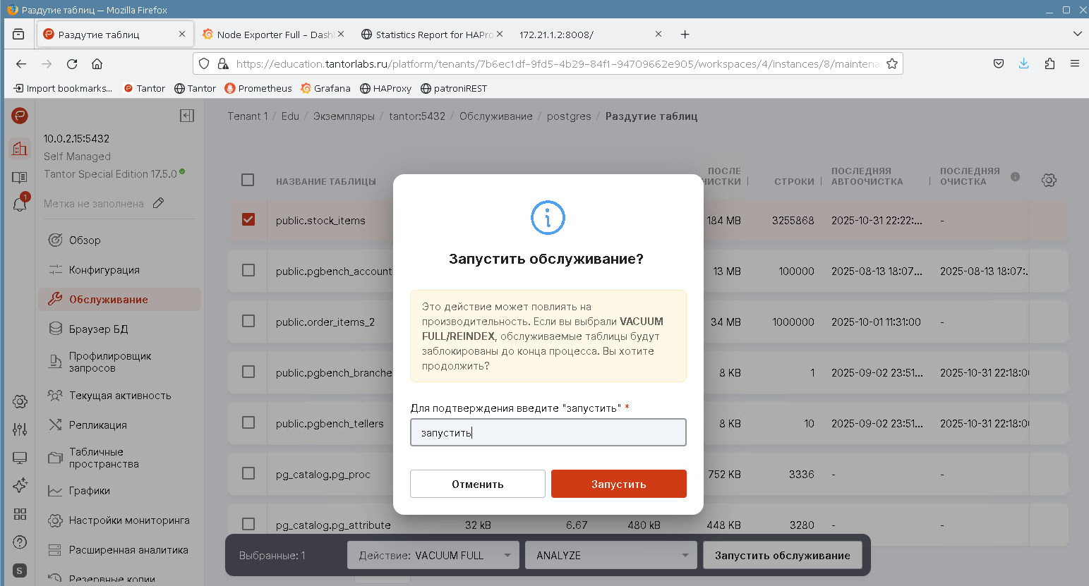Для проверки того, что рабочие процессы подсоединяются, можно открыть страницу в браузере: https://education.tantorlabs.ru/pg-monitor/hosts