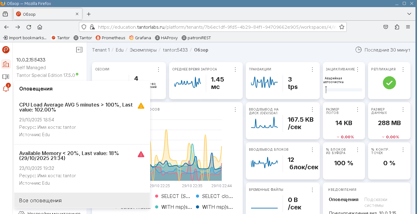 4) Откройте страницу Расширенной аналитики. Для этого в браузере откройте Tenant 1 -> Edu -> 10.0.2.15:5432 -> Advanced Analytics