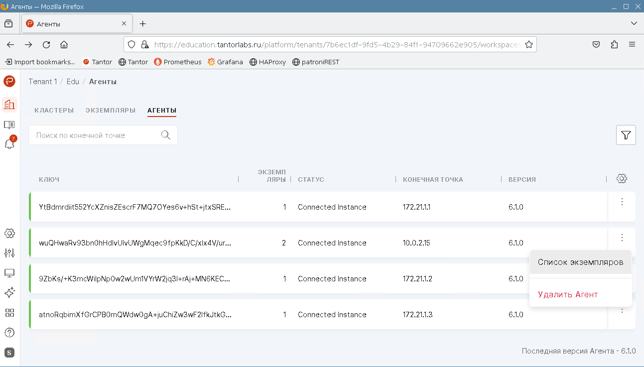 Практика опциональна. В этой практике в командной строке агенты регистрируются в Платформе и добавляются экземпляры Patroni. Командная строка удобна для регистрации нескольких агентов и экземпляров.