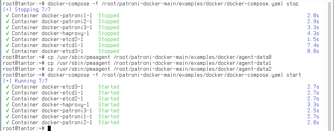 7) Добавьте экземпляры PostgreSQL, которые находятся под управлением Patroni под обслуживание агентов. Для этого выполните команды: