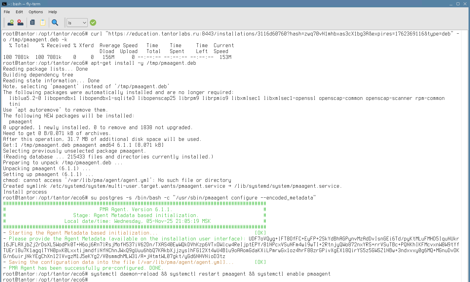 root@tantor:~# ssh-copy-id -i /opt/tantor/eco/ssh/id_rsa postgres@education.tantorlabs.ru
