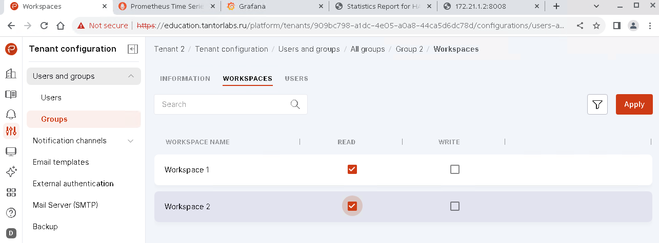 3) В браузере Firefox зайдите в Tenant2 -> Расширенная информация.