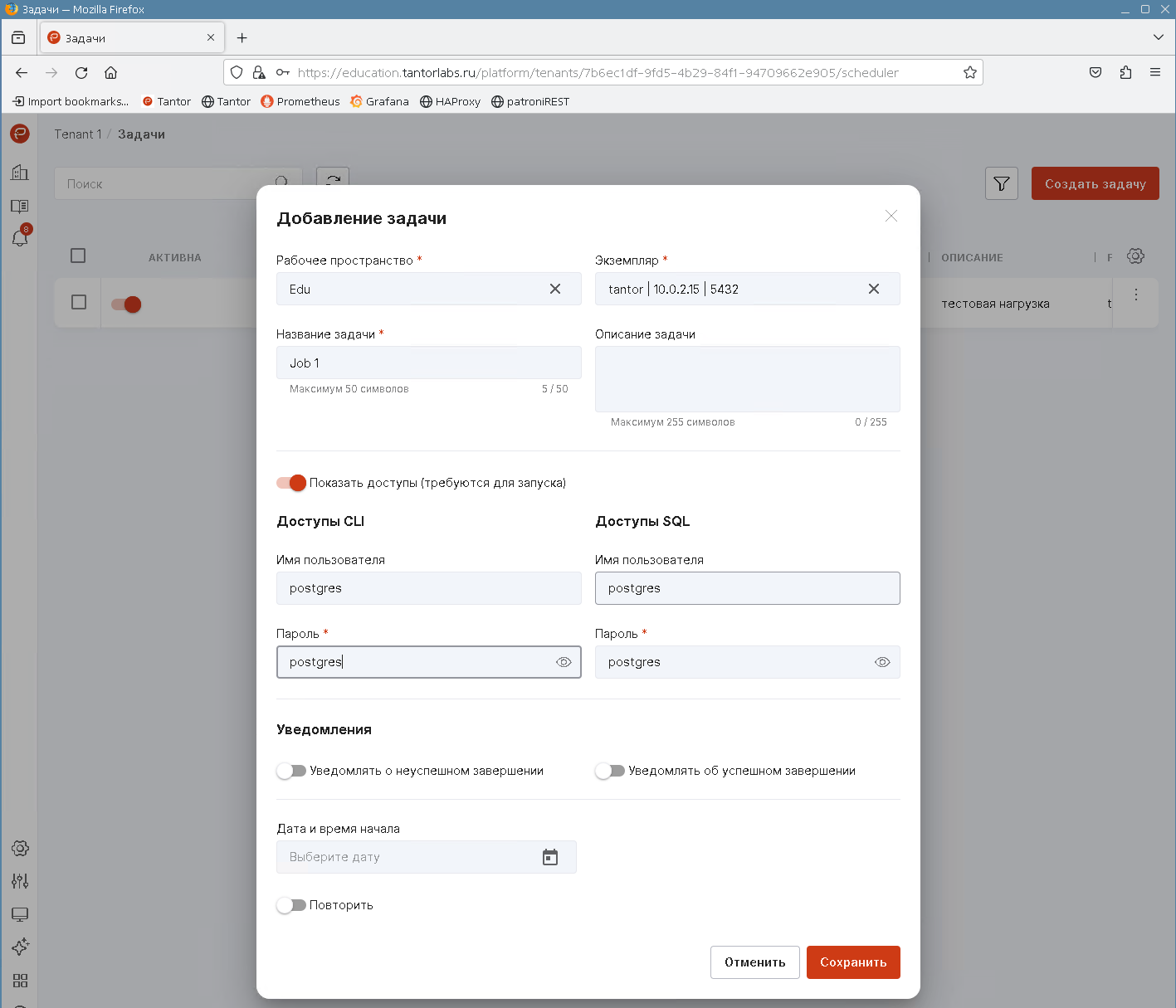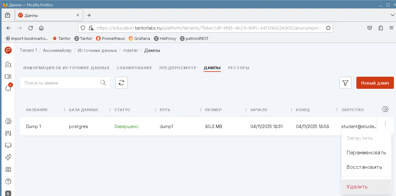 2) Войдите в браузере Chromium в Платформу под dba1@dba1.ru/Student123!