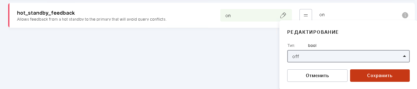 На картинке присутствует строка для Hostname=10.0.2.15:5433 - после захода на страницу Advanced Analytics реплики запустился рабочий процесс, который успешно подсоединился к хосту реплики. На картинке два процесса не могут подключиться к хосту и подсвечиваются жёлтым цветом.
